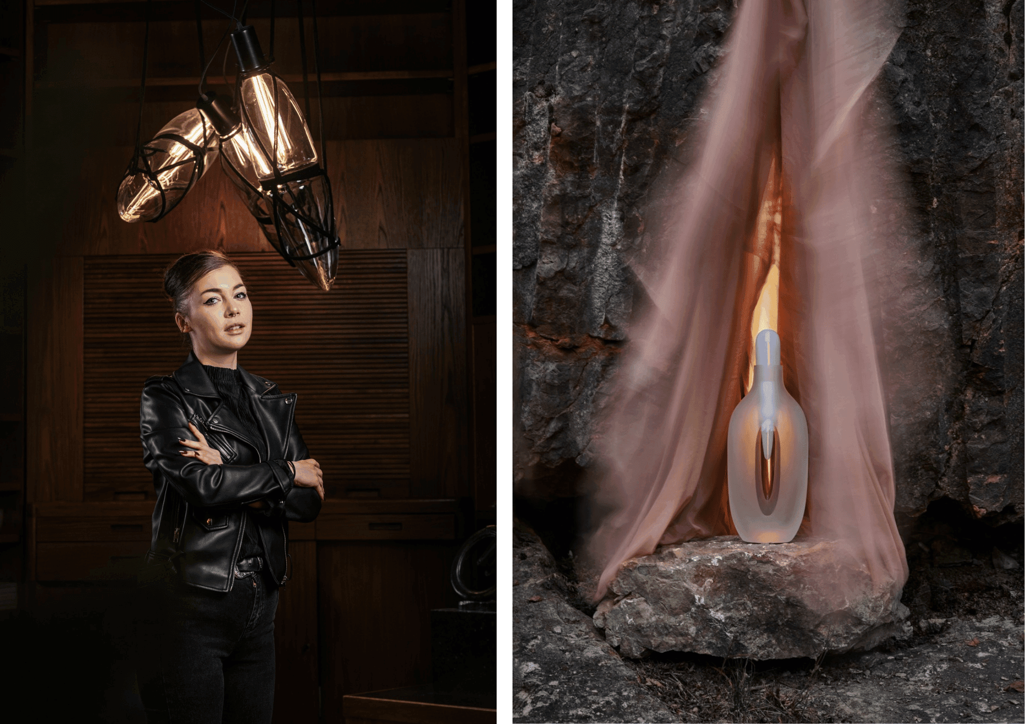 Nalevo: Kateřina Handlová. Foto: Jan Zima. Napravo: Karafa Gentle z kolekce Spirit.