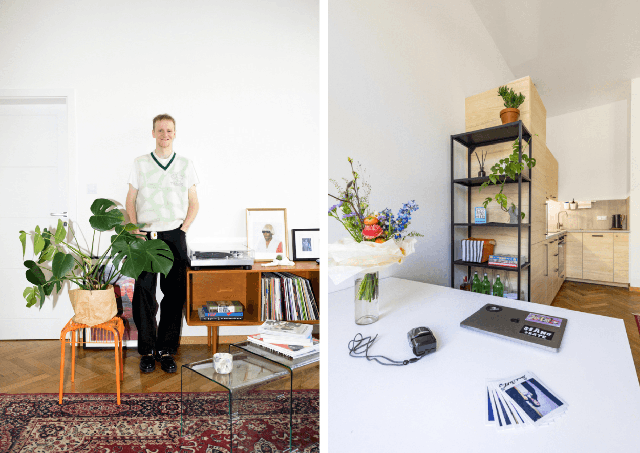 Při rozhodování mě přesvědčilo řešení dispozice a nezaměnitelné dřevěné parkety v tmavém odstínu, které dodávají prostoru vintage nádech, což je mi osobně blízké. Oddělený koutek s postelí splňuje funkci doupěte. To byl problém v předchozím bytě, kdy jsem měl postel stále na očích, tudíž jsem se nemohl na práci pořádně soustředit. Směřování bytu na jih zachraňuje odraz denního světla a slunce od protějších kanceláří a krásná velkorozměrná dvojitá okna, která zároveň izolují venkovní ruch ze silnice. To překvapí každého, kdo přijde na návštěvu. Po intenzivních dnech díky tomu dokážu vypnout a najít si chvilku pro regeneraci a nalezení vnitřního klidu. Mé rodné kořeny z industriálního města a skatera/fotografa uprostřed ulice úzce reflektují i můj domov. Kombinace tradičního s moderním nábytkem doplněného o dekorace je podle mě klíčem k úspěchu. Vybrat a rozmístit vybavení do menšího bytu je poměrně oříšek, ale čelit těmto výzvám je zábava. Další výhodou bytu je výborná dostupnost do všech městských částí, moderní a příjemné prostředí s plochami pro relaxaci, veřejná zeleň, výhled na Vítkově, cyklostezka podél řeky a nově vybudovaná lávka HolKa propojující Karlín a sousední Holešovice, která je pro většinu obyvatel gamechanger. Karlín funguje jako autonomní jednotka, která nabízí vše, co člověk ke spokojenému životu potřebuje. I přesto, že se zde nachází plno business komplexů, stále z něj dýchá maloměstská a přátelská atmosféra.