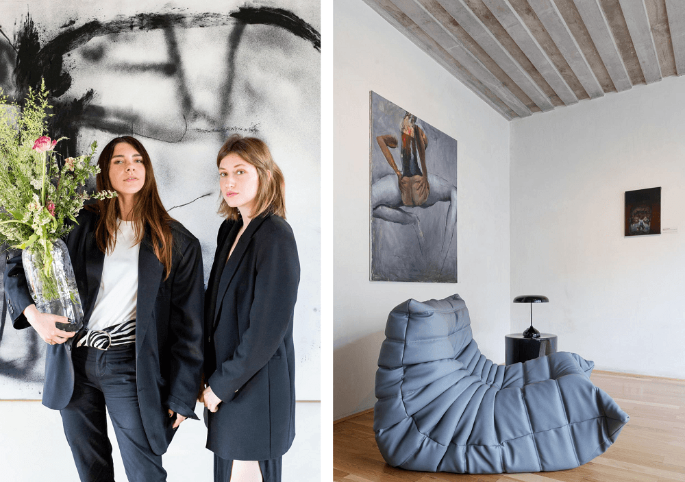 Nahoře: Atmosféru v Nookart Studio si zamilujete už při první návštěvě a rádi se sem budete vracet. Foto: Michal Ureš. Vlevo dole: Zakladatelky Nookart Studio Eliška Hradec Chomisteková (nalevo) a Michaela Němečková (napravo). Foto: Nikola Čablová. Vpravo dole: Najdete tu jak ikonická křesla od Ligne Roset, tak vintage designové interiérové kousky. Foto: Michal Ureš.