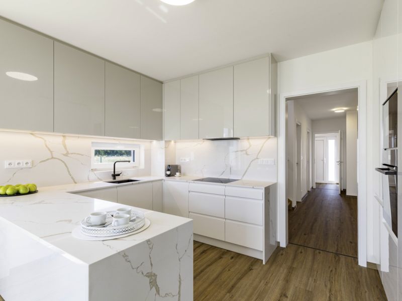 Ukázka moderní kuchyně z rodinného domu projektu Bydlení Kbeličky.