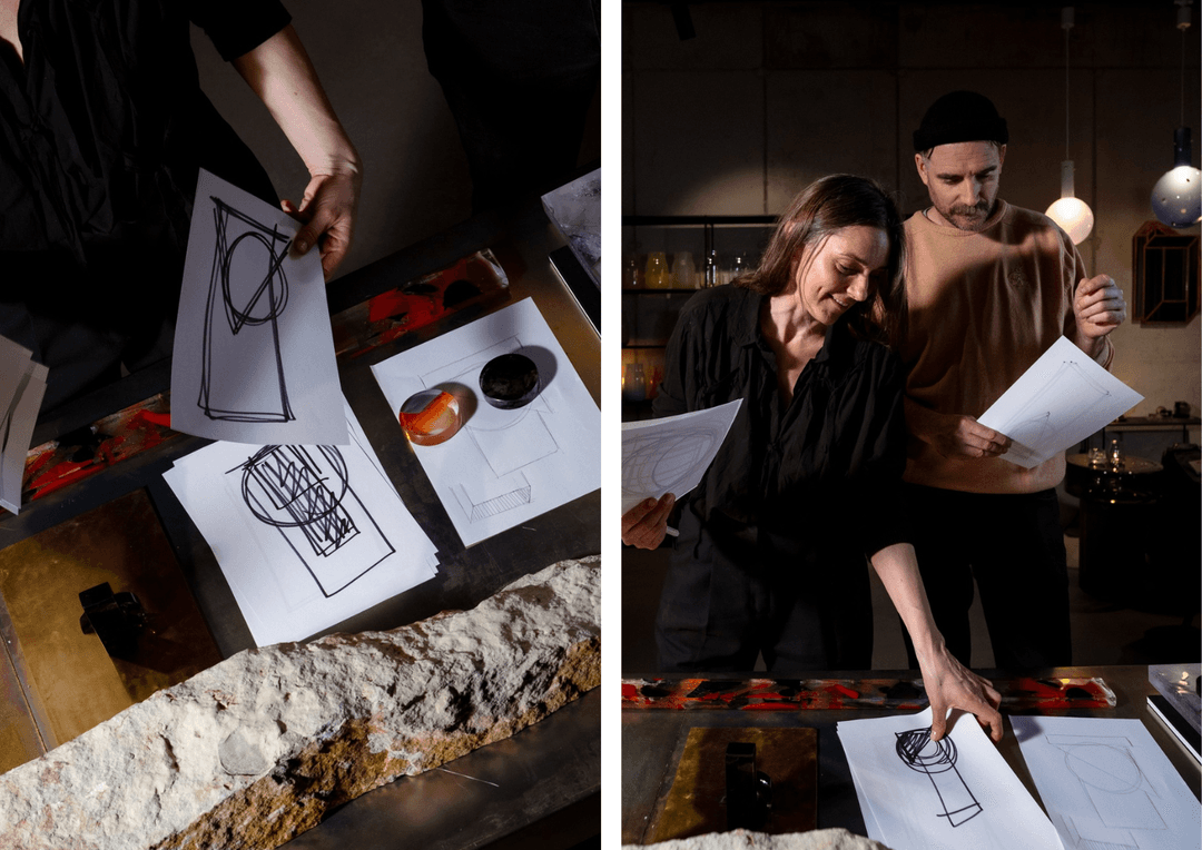 Proces samotné výroby myslím nás oba strašně baví. Trávím hodně času v holešovickém studiu a často cítím, že už potřebuji kontakt se samotným materiálem. Pustit se do výroby nebo alespoň asistovat. Všechny tyto prožitky se ve výsledném designu propíší. Vždy poznáte na každém produktu s jakou vášní a znalostí materiálu designer pracoval. Osobní prožitek hodně posouvá naši práci.