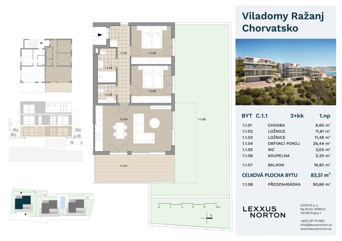 The project includes 3 vilahouses with only 15 apartments 2+kk - 4+kk. Each of them has a large terrace or front garden, a parking space and a cellar. The gated complex also includes a heated swimming pool. From the apartment or terrace you will enjoy amazing views of the picturesque bay. And for swimming you will be tempted by two beautiful beaches, covered with fine pebbles with a gradual entrance to the sea.