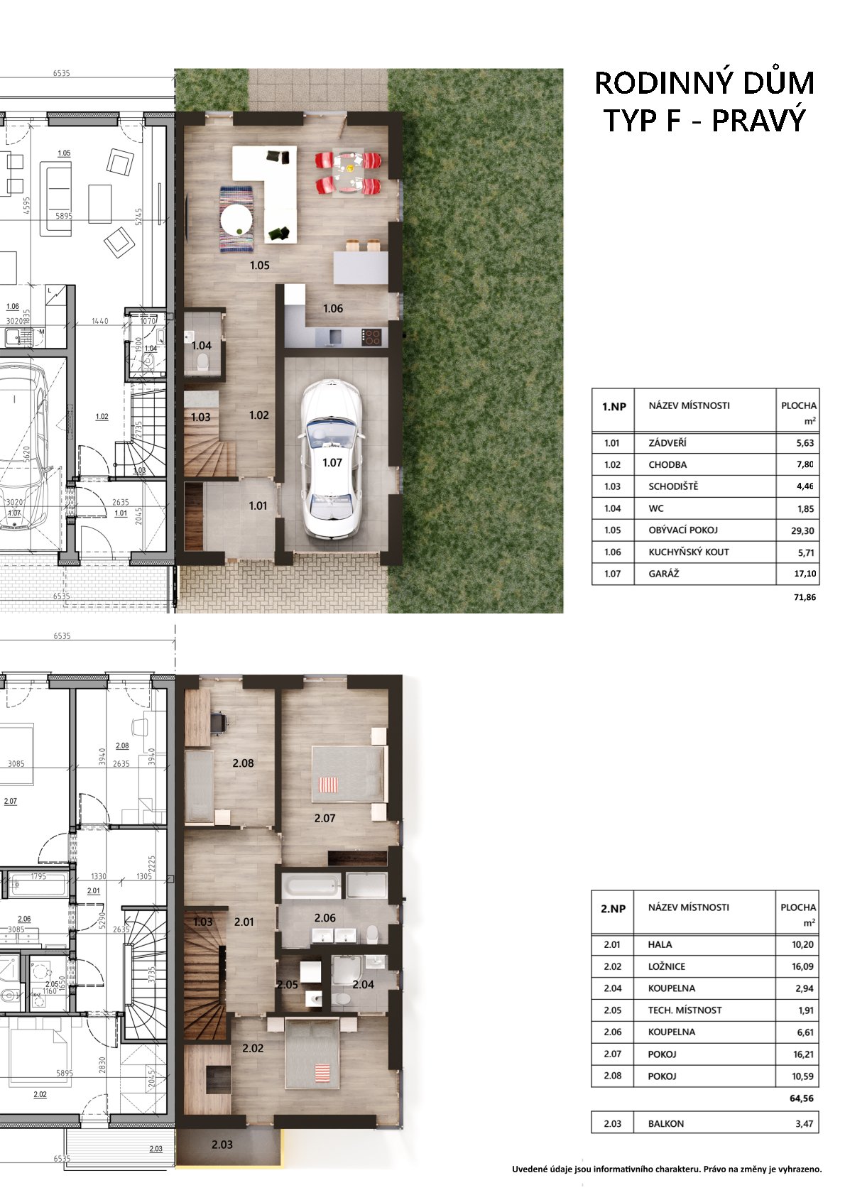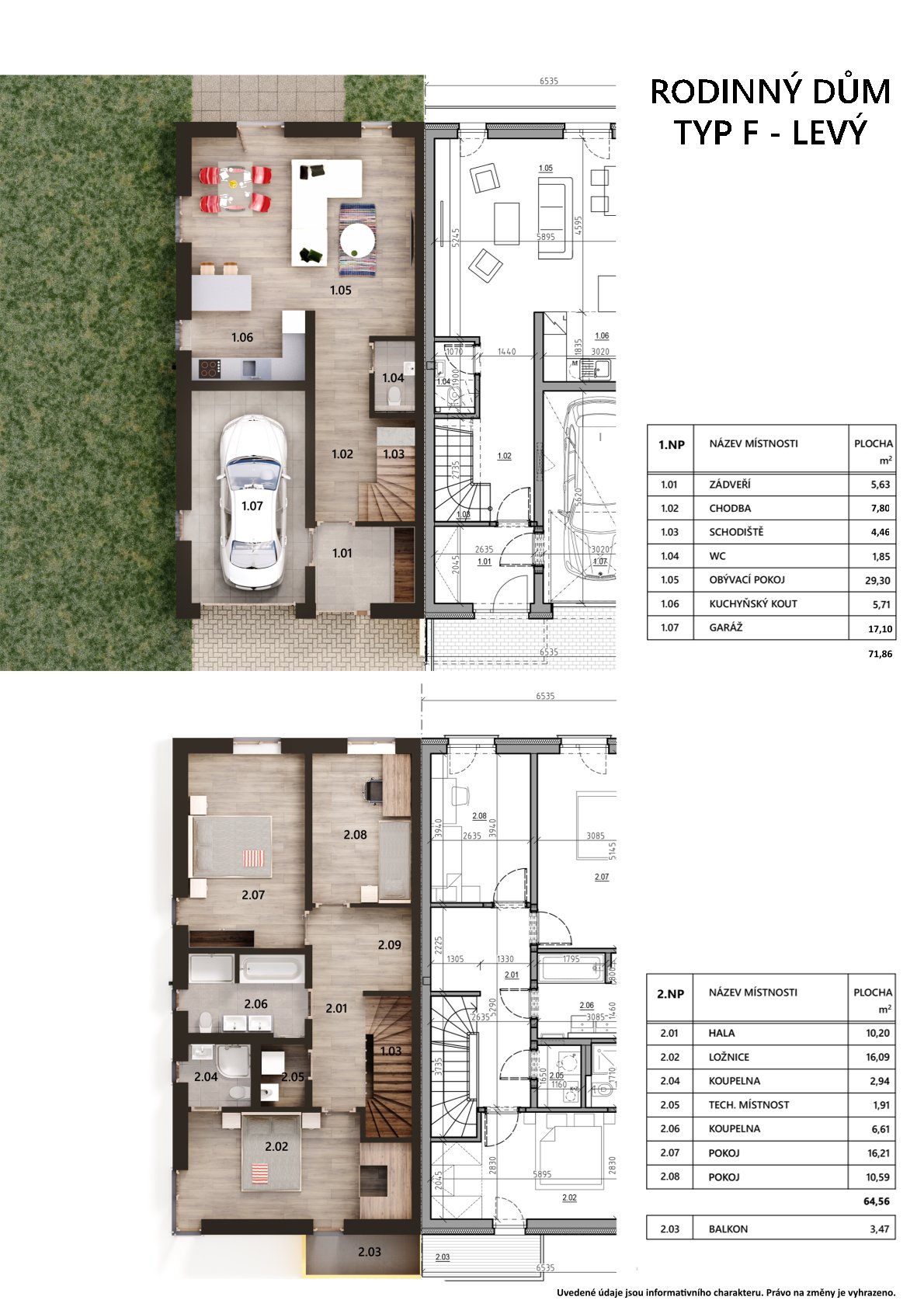 Houses 4+kk with private garage have an area of almost 140 sqm and the plots are in sizes of 400 - 450 sqm.