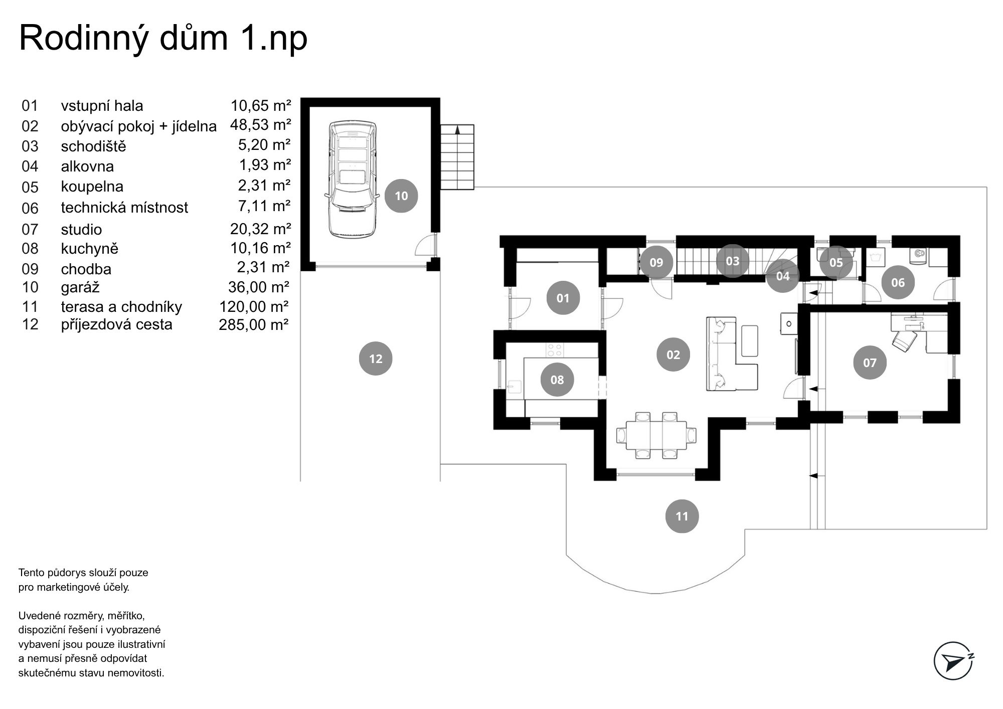 Součástí nemovitosti je prostorná garáž a možnost parkování až pro tři vozidla na pozemku.