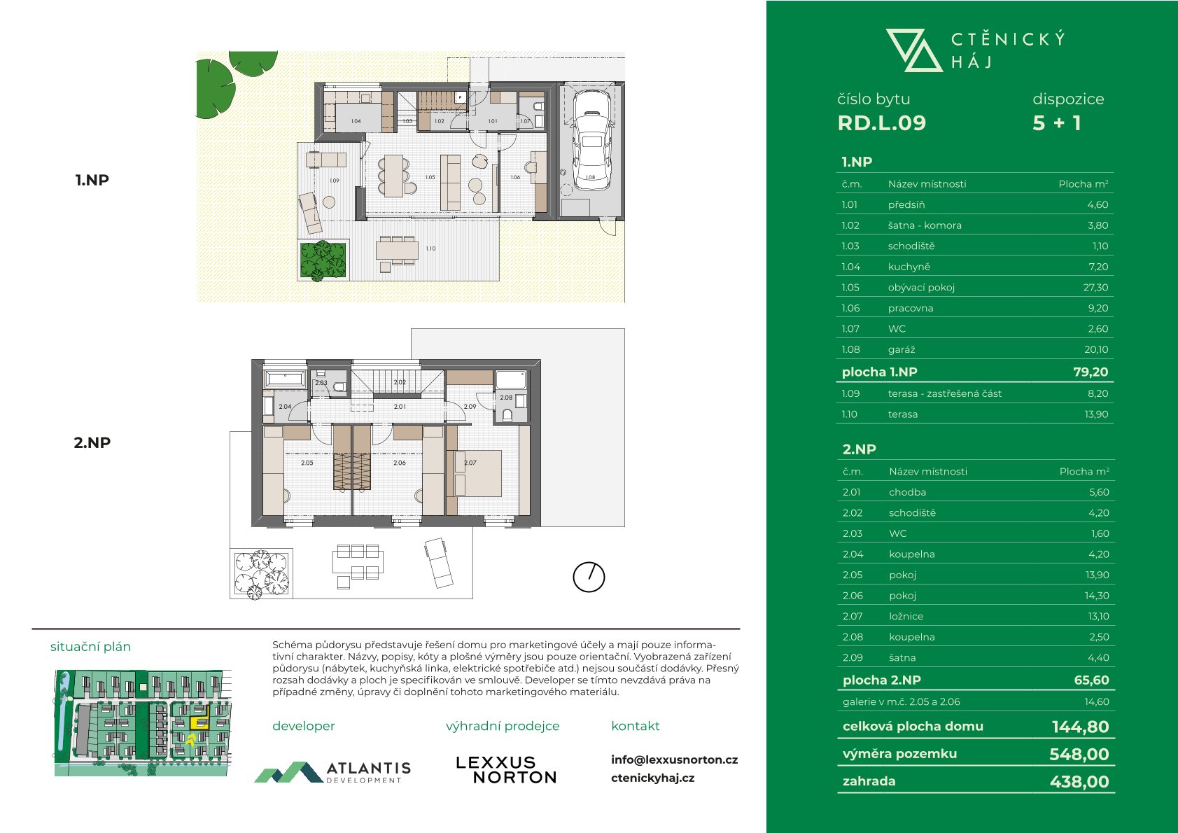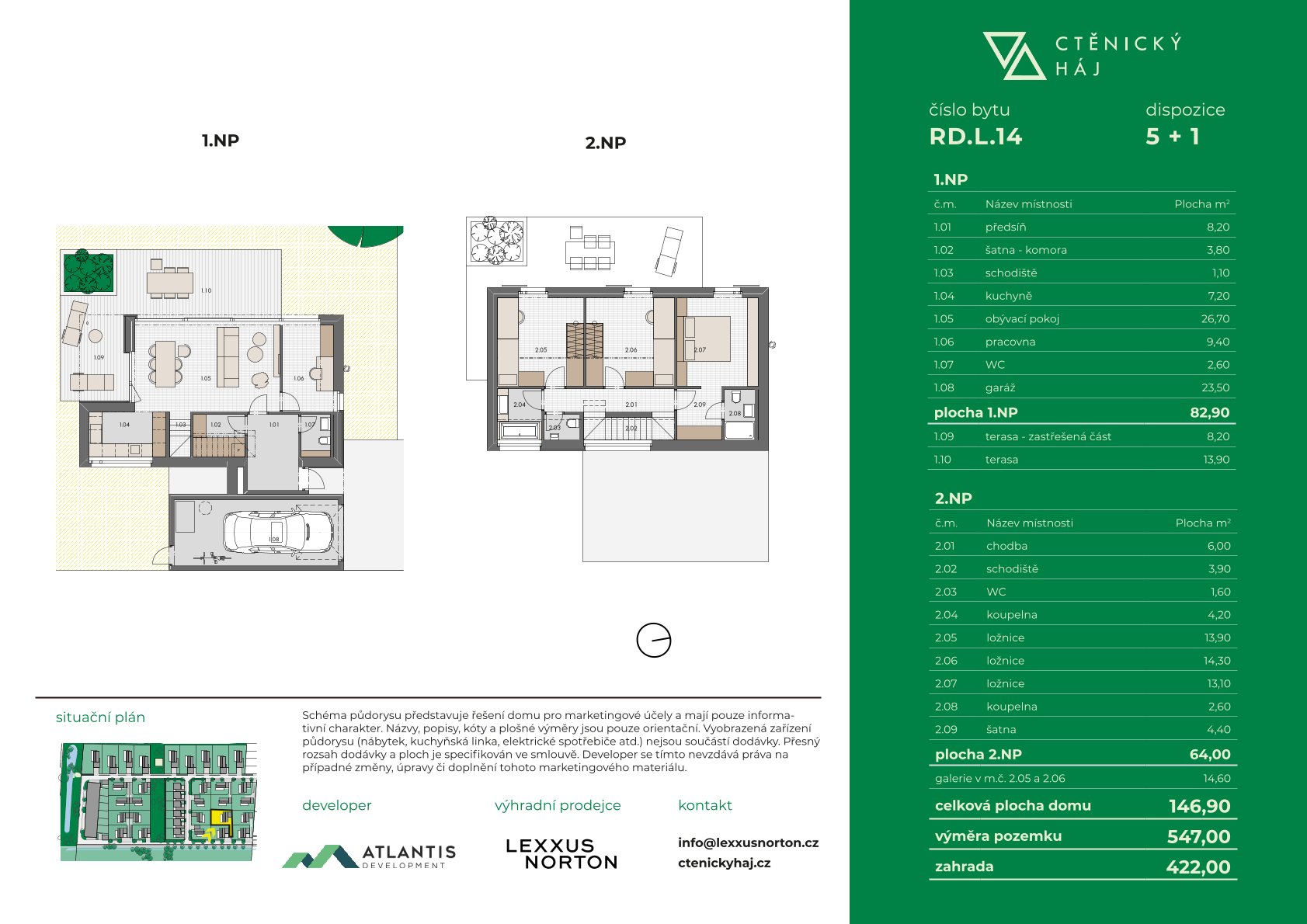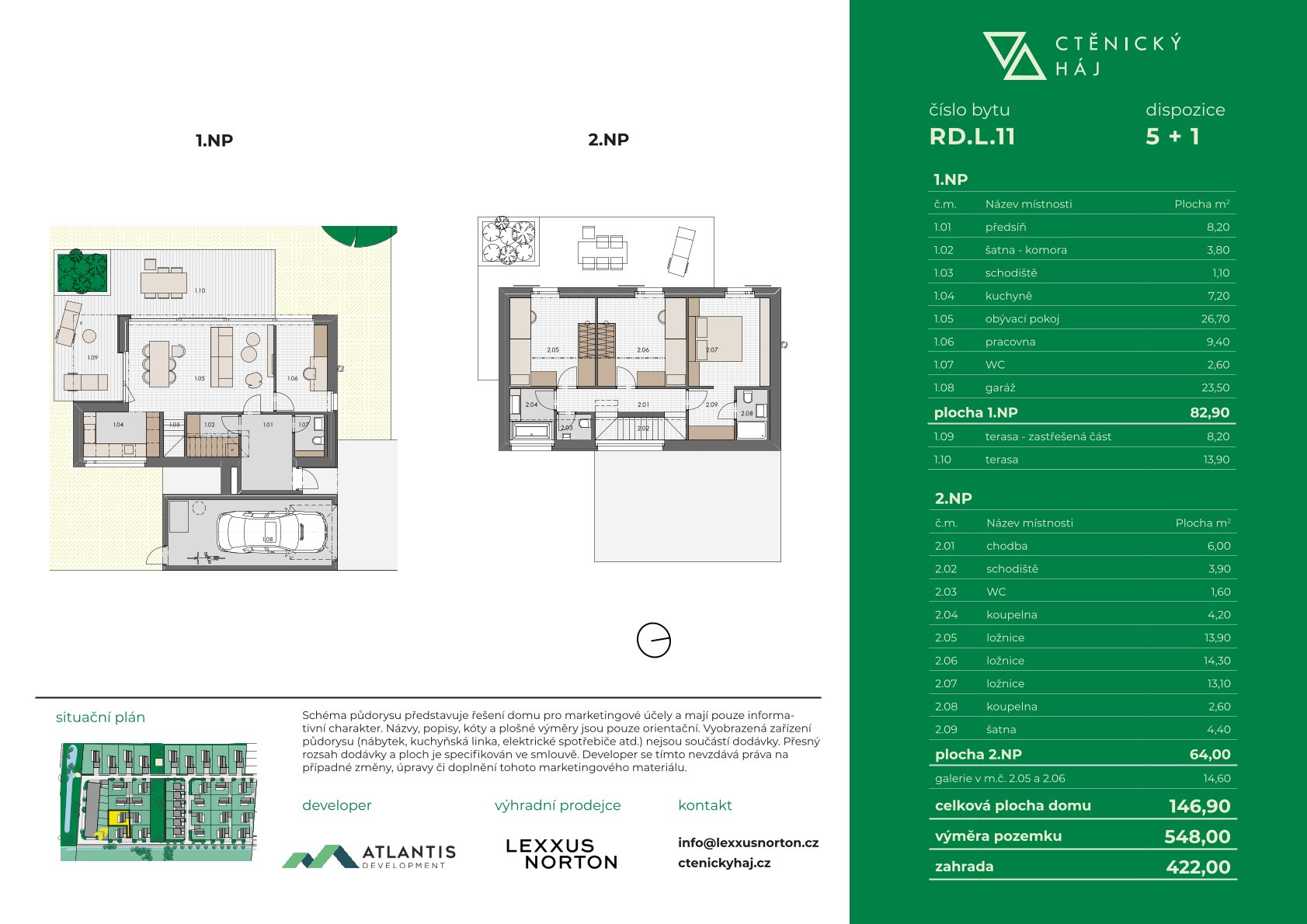 • Typ L – Solitérní domy 5+1 s plochou 138,1–151,7 m² a pozemky 414–548 m²