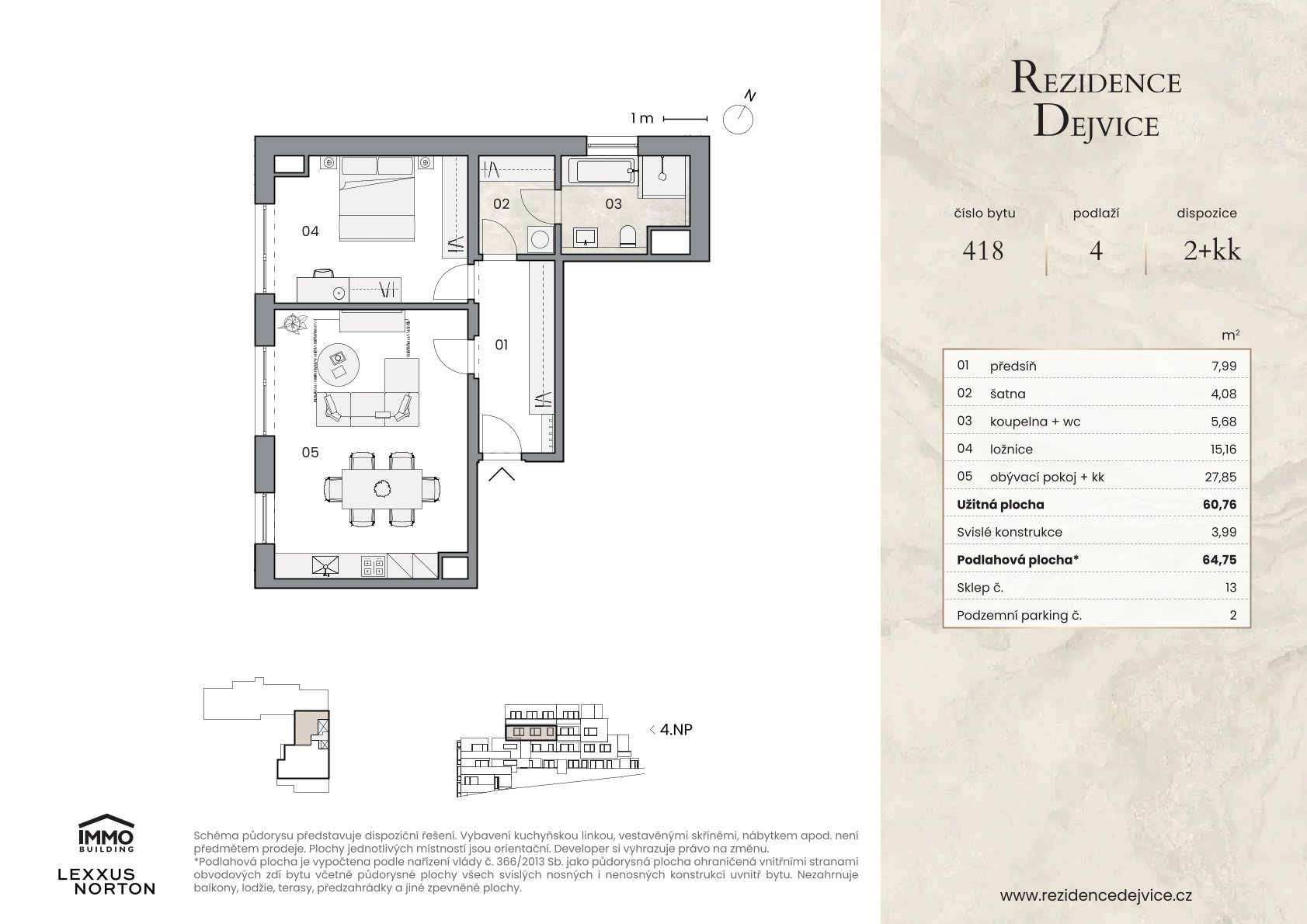 Dispozice bytů jsou promyšlené do posledního detailu – od útulných 2+kk přes rodinné 3+kk a 4+kk až po výjimečnou jednotku 5+kk s velkou terasou.
