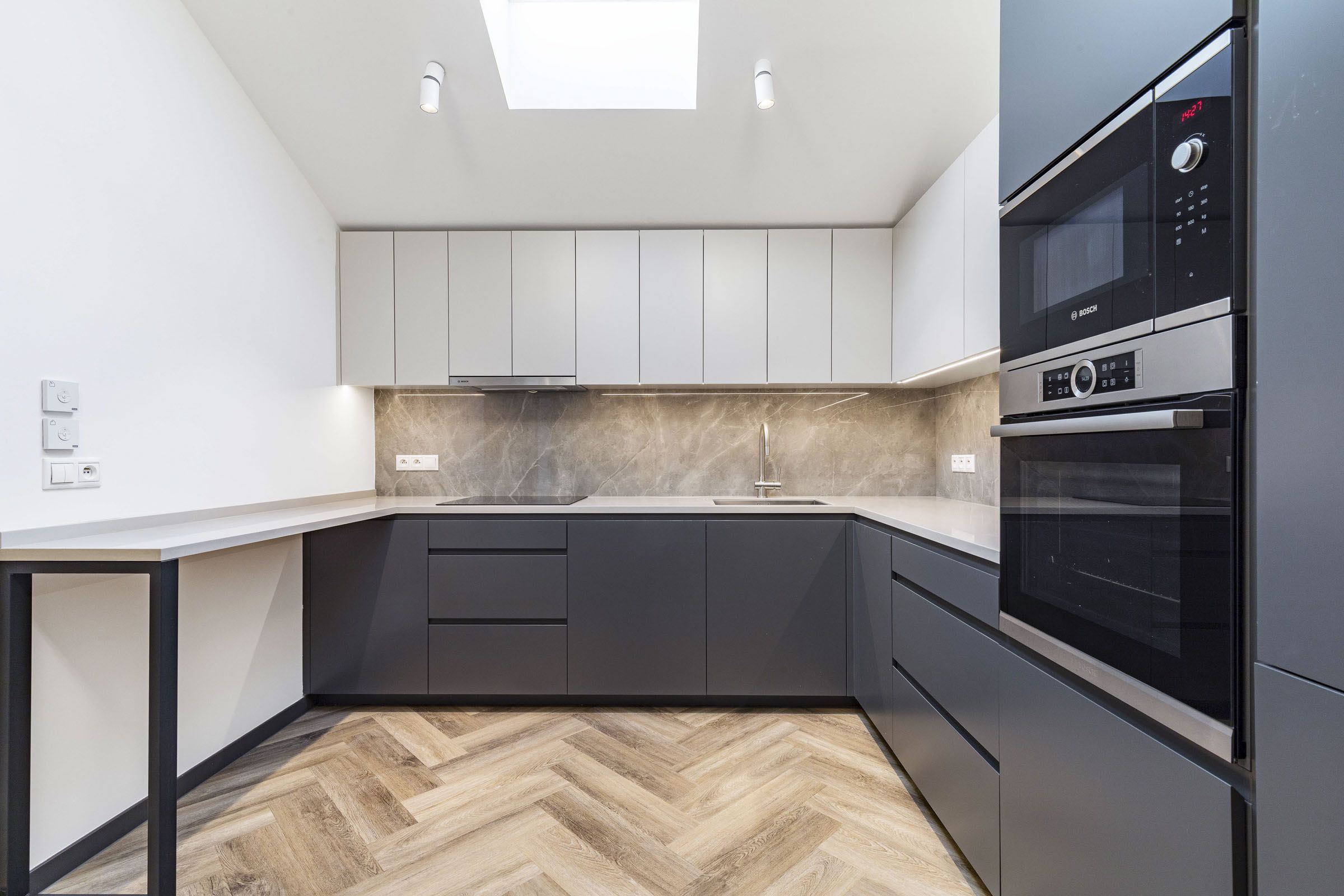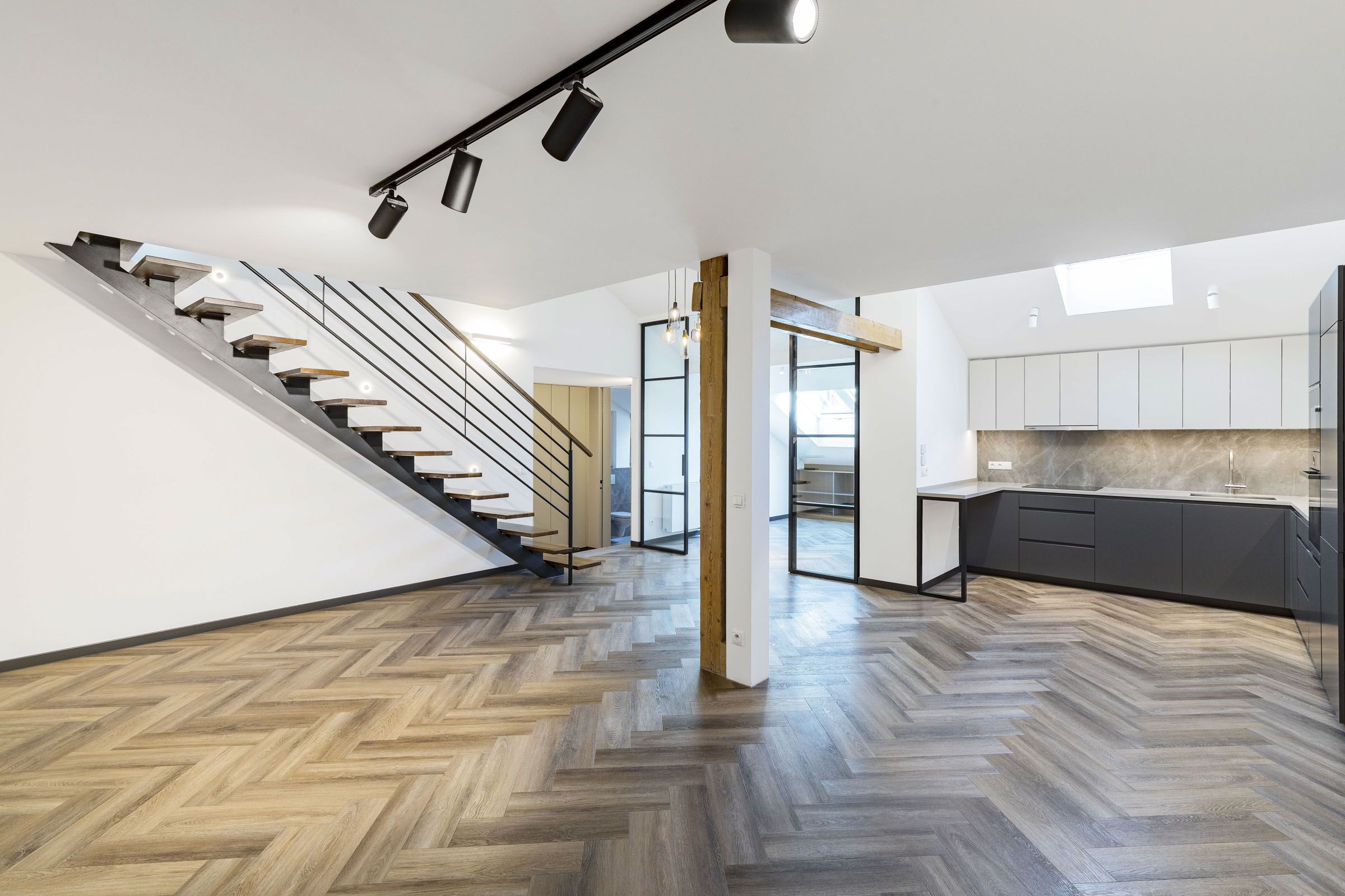 We present a unique duplex two-bedroom apartment and a total usable area of 119 sqm, situated in the quiet and prestigious Hastalska Street in Old Town, just steps from Parizska Street and Old Town Square. The combination of original architecture, contemporary design, and premium finishes creates an exceptional home tailored for a discerning client seeking style, quality, and an outstanding location. The interior was designed in collaboration with the renowned architectural studio Acht. Every element has been custom-made with an emphasis on functionality, aesthetics, and impeccable detailing. The kitchen and all built-in storage were crafted by Devoto Furniture.