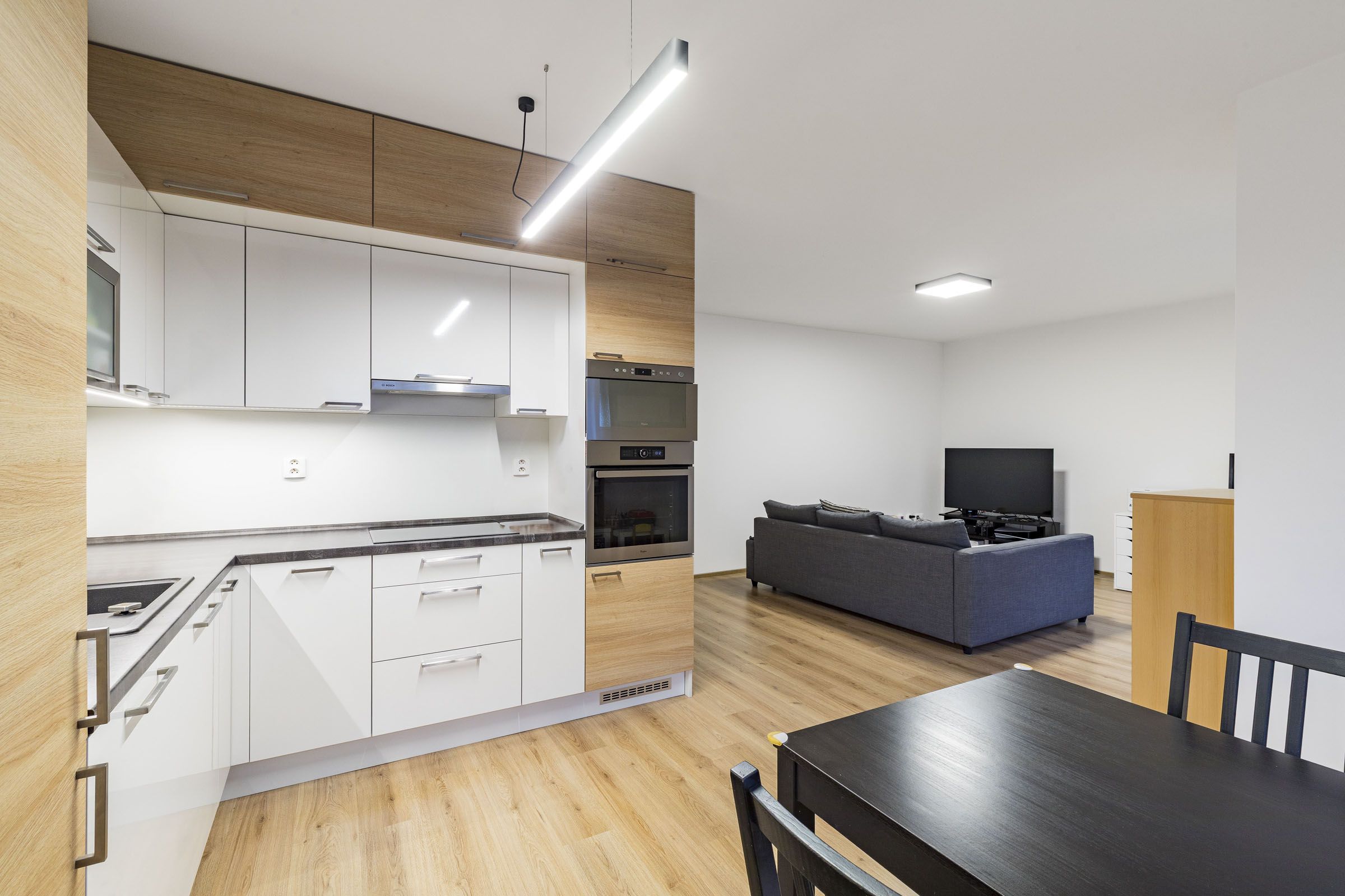 The apartment is equipped with high-quality materials and practical features for comfortable living. The apartment includes a custom-made kitchen that is both functional and aesthetically pleasing. Vinyl flooring is laid throughout the apartment, which is modern, durable, and easy to maintain. The building has an elevator, which ensures comfort in everyday movement. A 3.4 sqm cellar provides additional storage space, and a parking space for disabled persons is reserved and easily accessible. The apartment is ready for immediate occupancy and offers everything you need for modern and comfortable living.