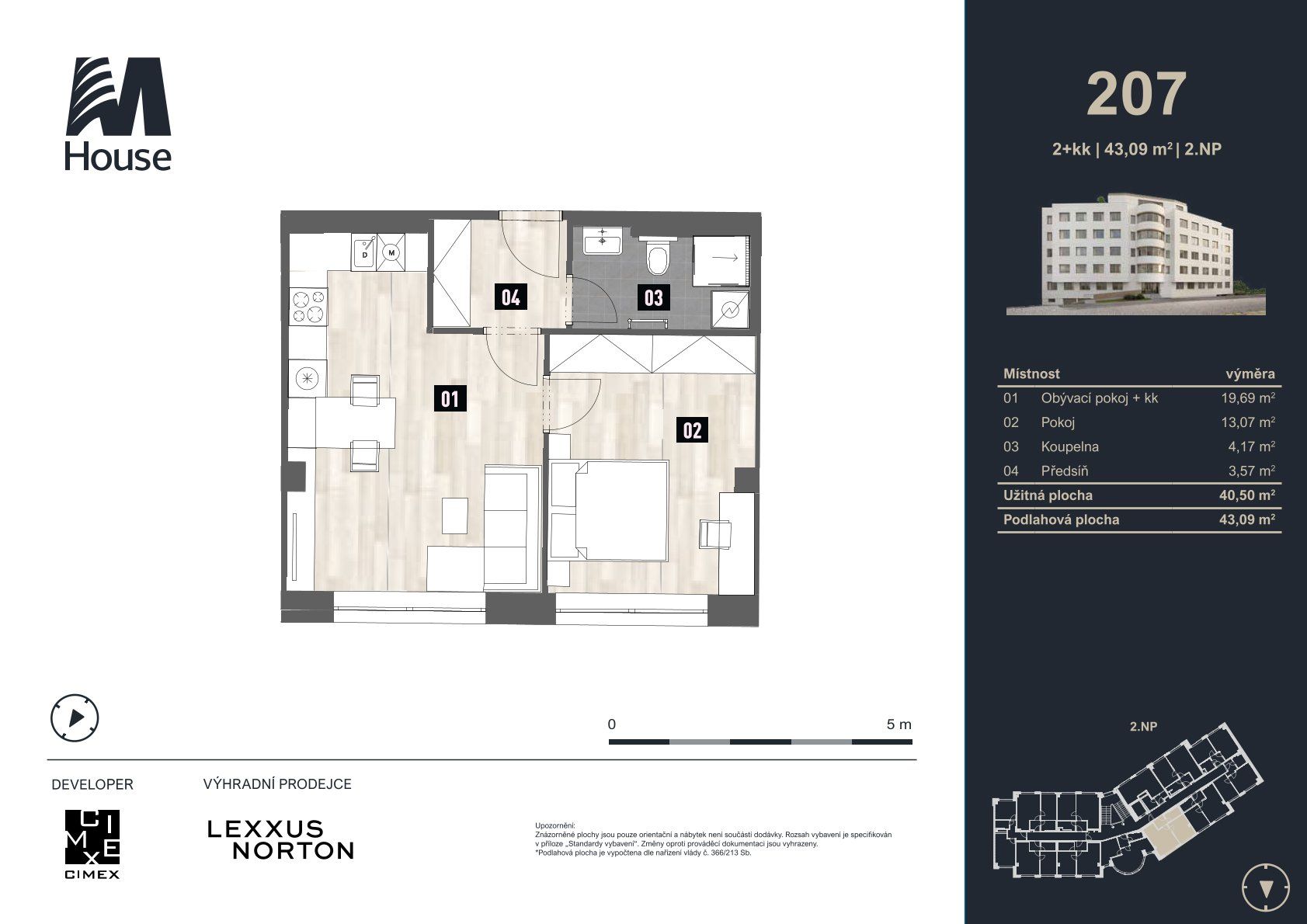 Step into the world of modern living with this single bedroom accommodation unit (43.09 sqm), located on the first floor of the new M-House residential project in Prague's Vrsovice district. This project is designed with a focus on comfort, practicality, and functionality, reflected in the well-thought-out layout, quality materials, and modern technologies.