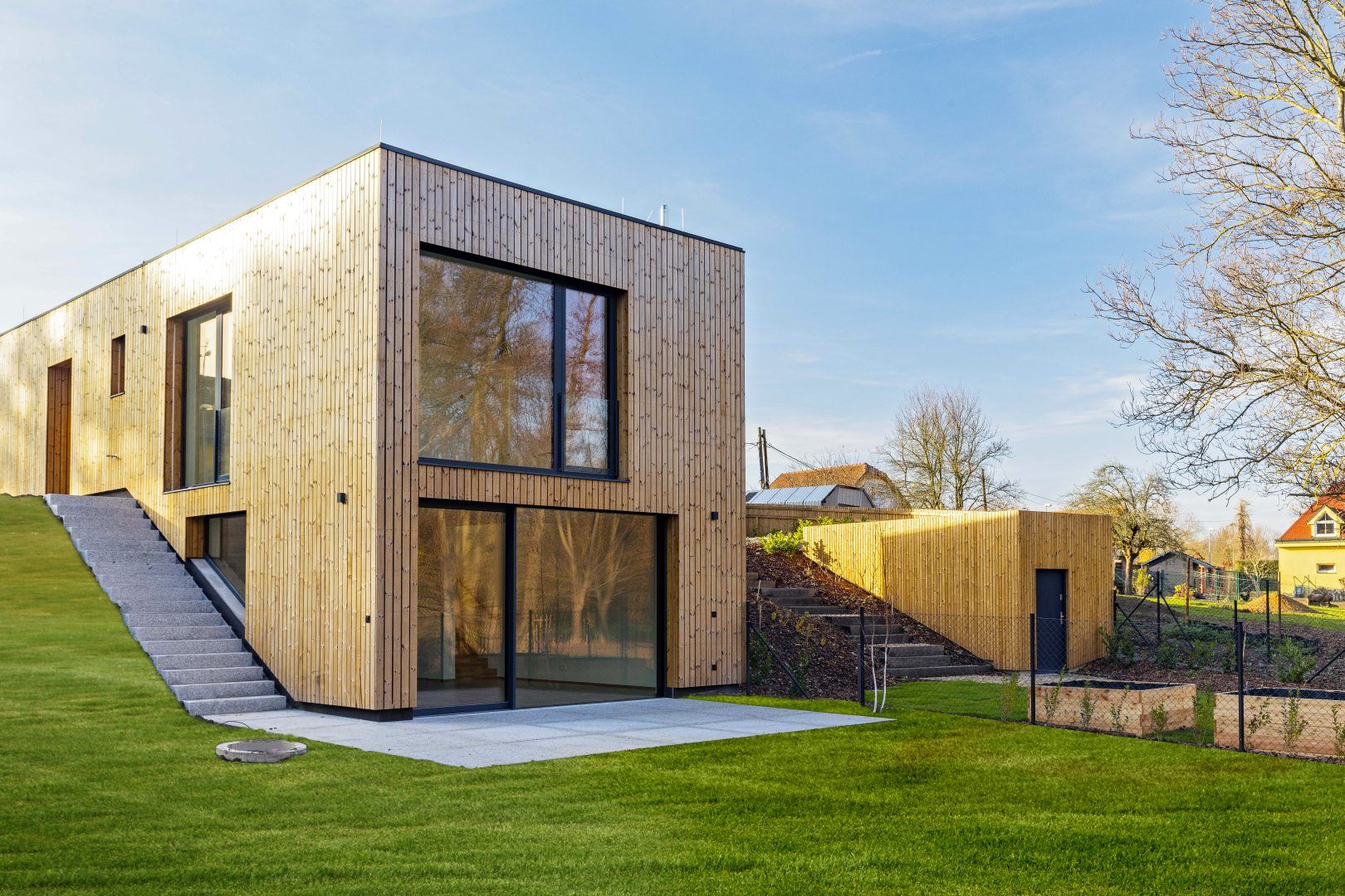 Dům, který je součástí komorního projektu BeNice, 8 rodinných domů se nachází v klidné ulici centrálních Benic v přímém spojení a blízkosti přírodního parku.