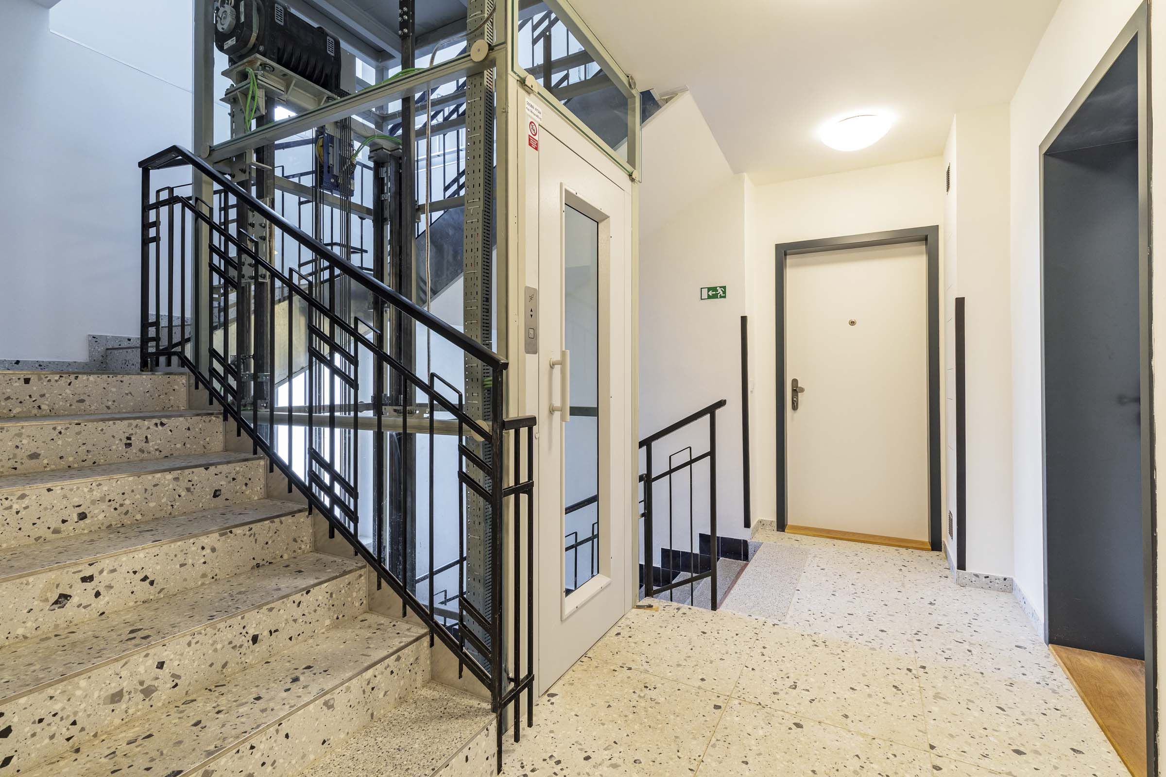 Dům má novou elegantní fasádu, která sjednocuje prostor původní budovy a novostavby horních pater. Společné prostory prochází renovací. Výtah má výstup přímo v jednotlivých patrech.