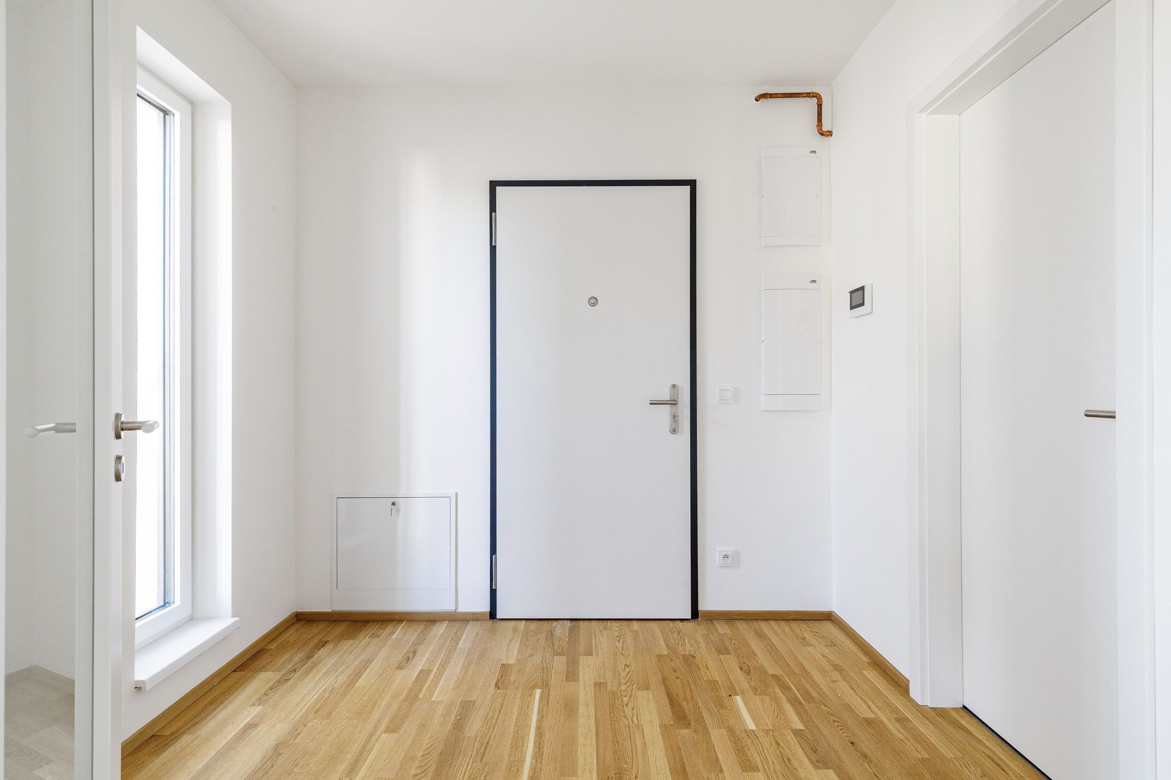 Byt je dokončen ve vysokém standardu. Třívrstvé dubové podlahy, velkoplošná okna s antracitovými plast-hliníkovými rámy, venkovní žaluzie, v koupelnách pak velkoformátové obklady La Futura a sanita prémiových značek Ideal Standard, Kaldewei a Hüppe. Byt je vytápěn plynovým kondenzačním kotlem s užitím podlahového vytápění. K dispozici je klimatizace.