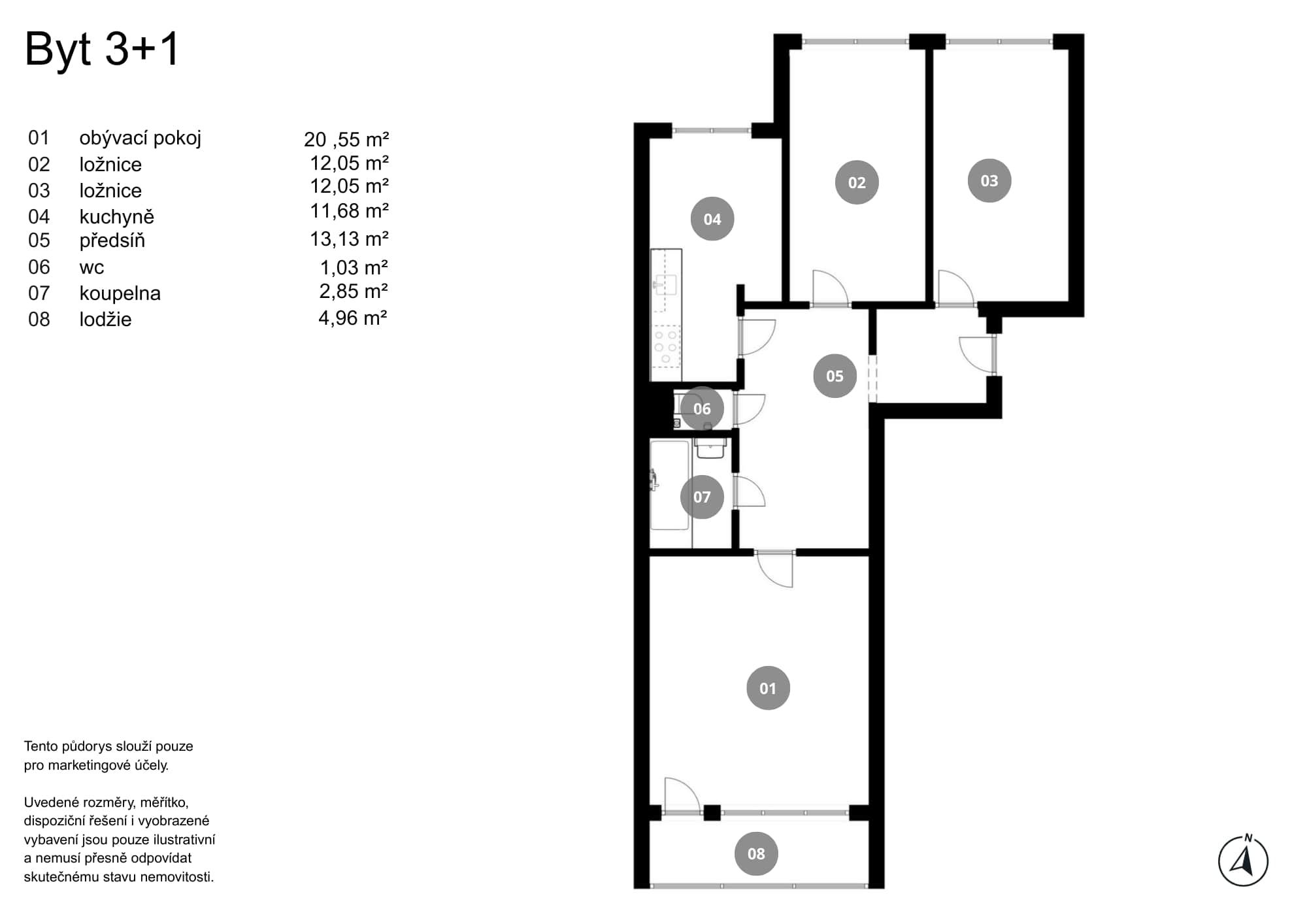 Byt je vybaven kvalitními moderními prvky, které zajistí komfortní bydlení. V prostorné předsíni se nachází velká vestavěná skříň nabízející dostatek úložného prostoru pro celou domácnost. Kuchyň je plně zařízená včetně všech spotřebičů. V celém bytě jsou položeny elegantní vinylové podlahy, které jsou nejen estetické, ale také praktické a snadno udržovatelné. Koupelna je vybavena prostornou vanou, která umožňuje příjemnou relaxaci po náročném dni. Lodžie je ideálním místem pro posezení s ranní kávou nebo večerní odpočinek s výhledem do okolí.