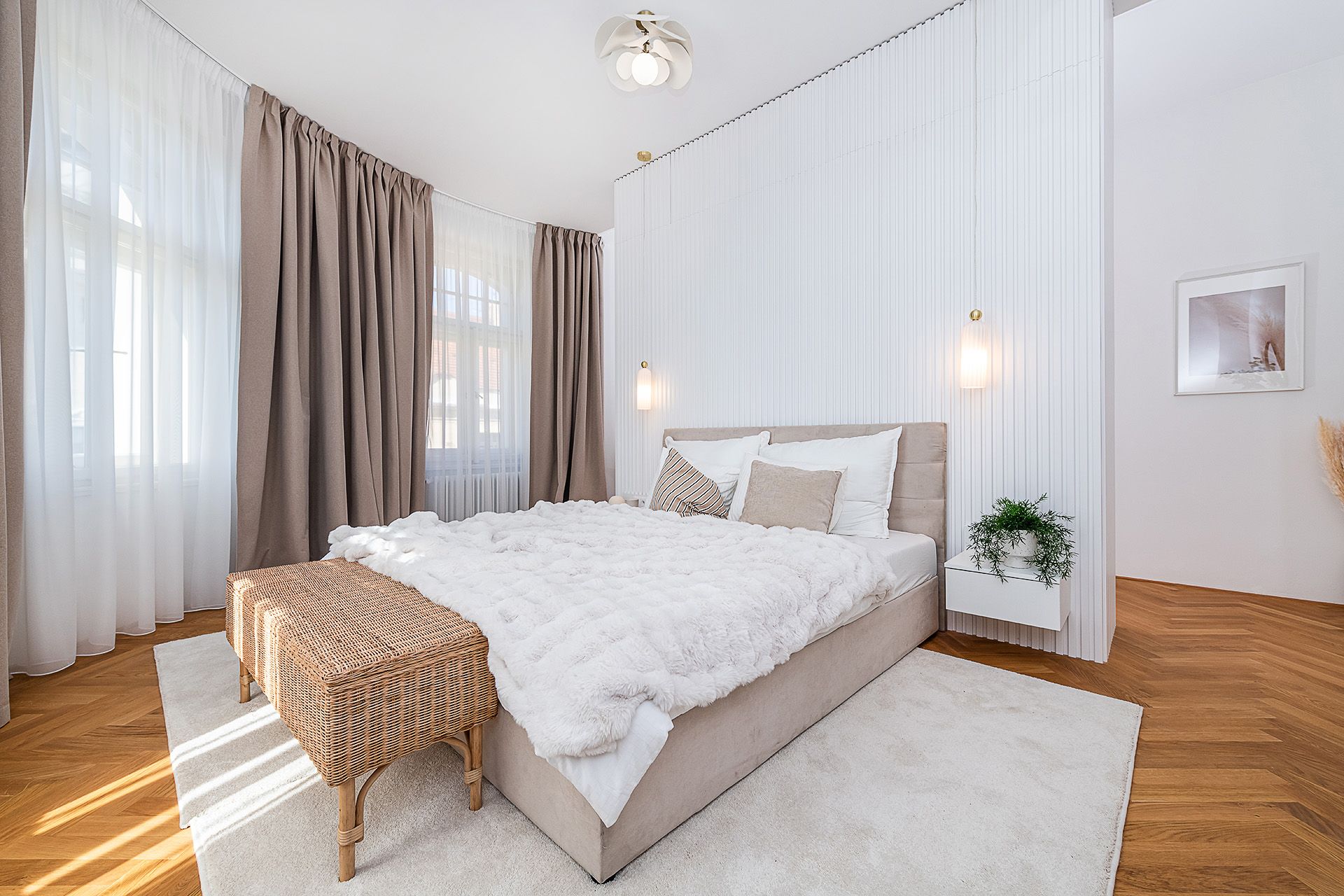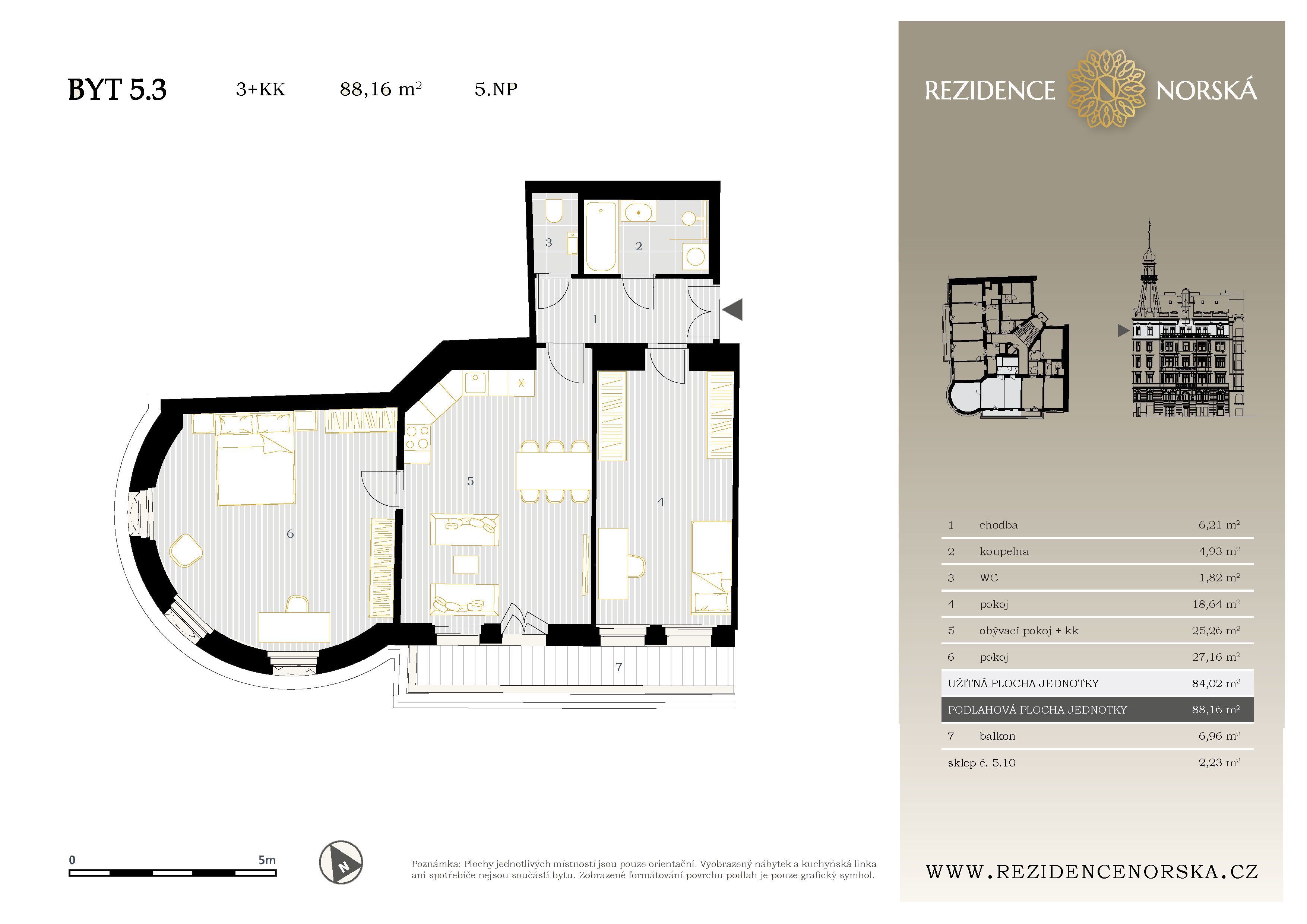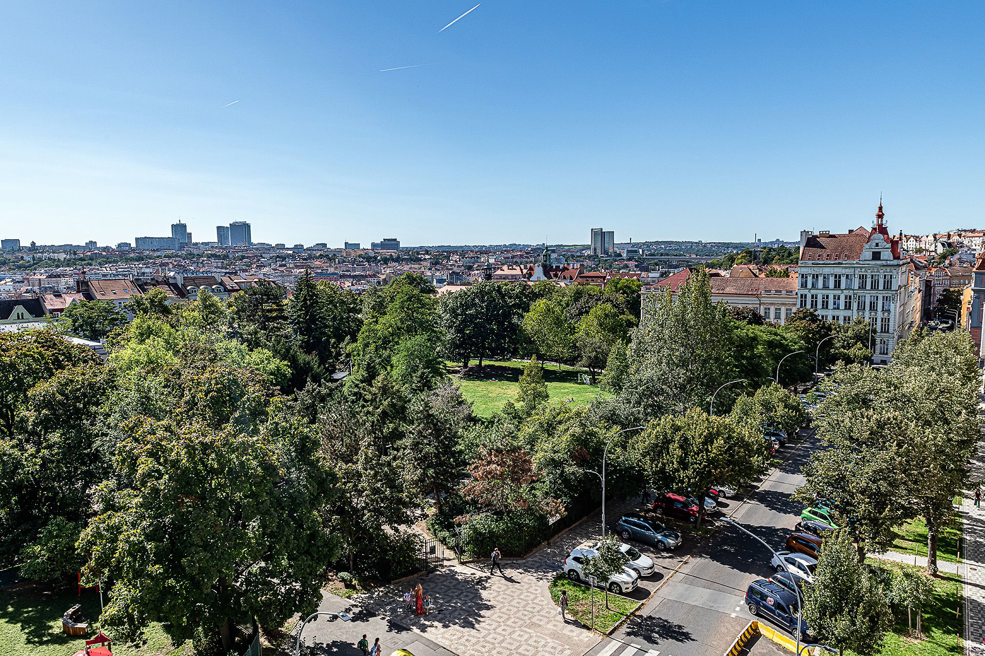 Nově dokončený a vybavený byt 3+kk v pátém patře činžovního domu po kompletní rekonstrukci na rohu ulic Norská a Kodaňská. Nalezneme zde dvě prostorné ložnice, obývací pokoj s kuchyňským koutem a výstupem na balkon s dokonalým výhledem na Heroldovy sady a vzdálený pražský horizont. Všechny pokoje bytu disponují výškou stropu 305 cm, jsou orientovány na jih a poskytují ze všech oken již zmiňovaný výhled. Jedná se o jeden z nejlepších bytů v tomto domě, známém také jako Rezidence Norská. Dům je vybaven výtahem a prošel kompletní rekonstrukcí dokončenou v lednu 2025. K bytu přísluší zděný sklep v suterénu domu. Dům je řešen jako bezbariérový, je vybaven novým hydraulickým výtahem. Jedná se unikátní nemovitost a mimořádnou příležitost k vlastnímu reprezentativnímu bydlení nebo jako dlouhodobou investici do stabilního aktiva.