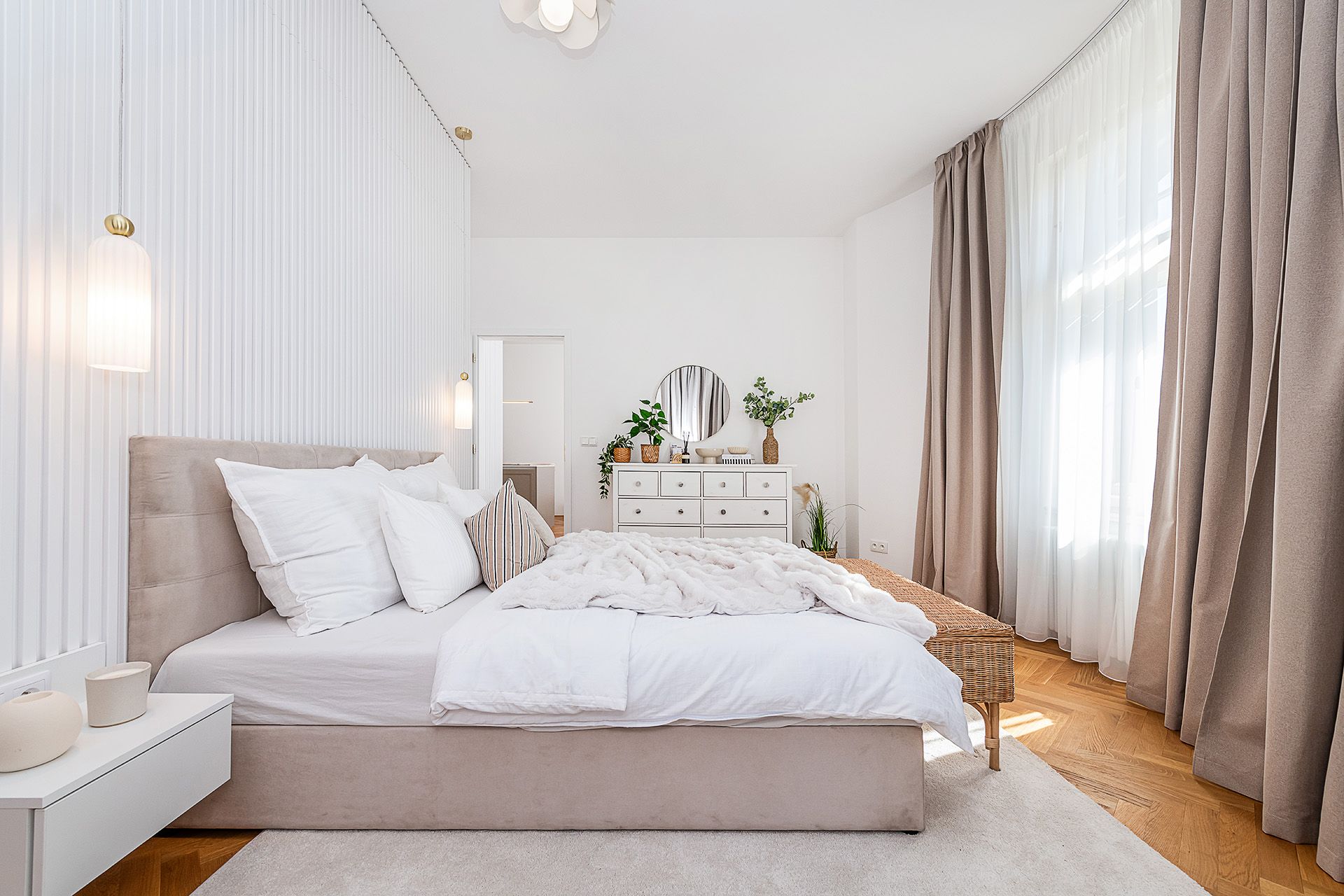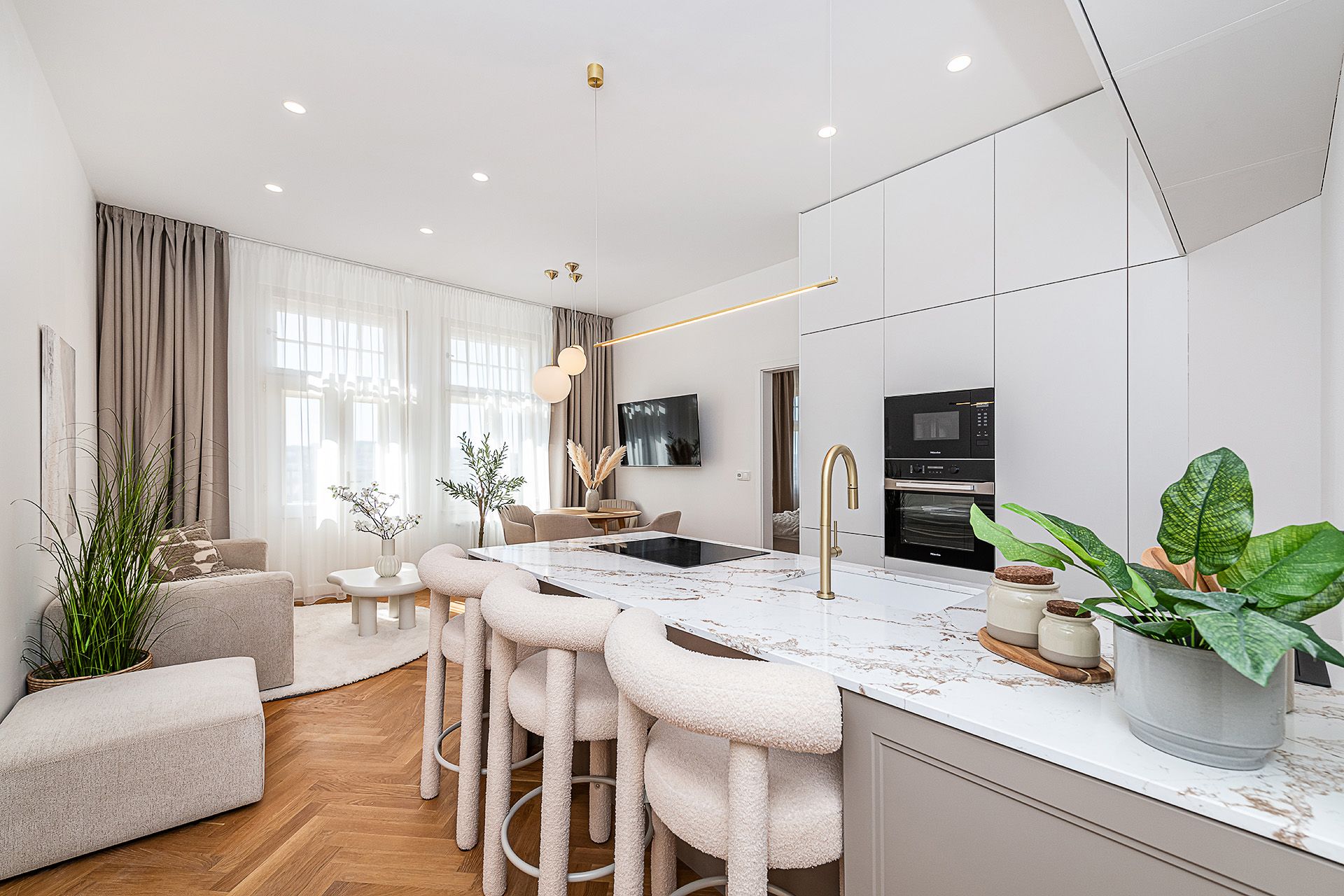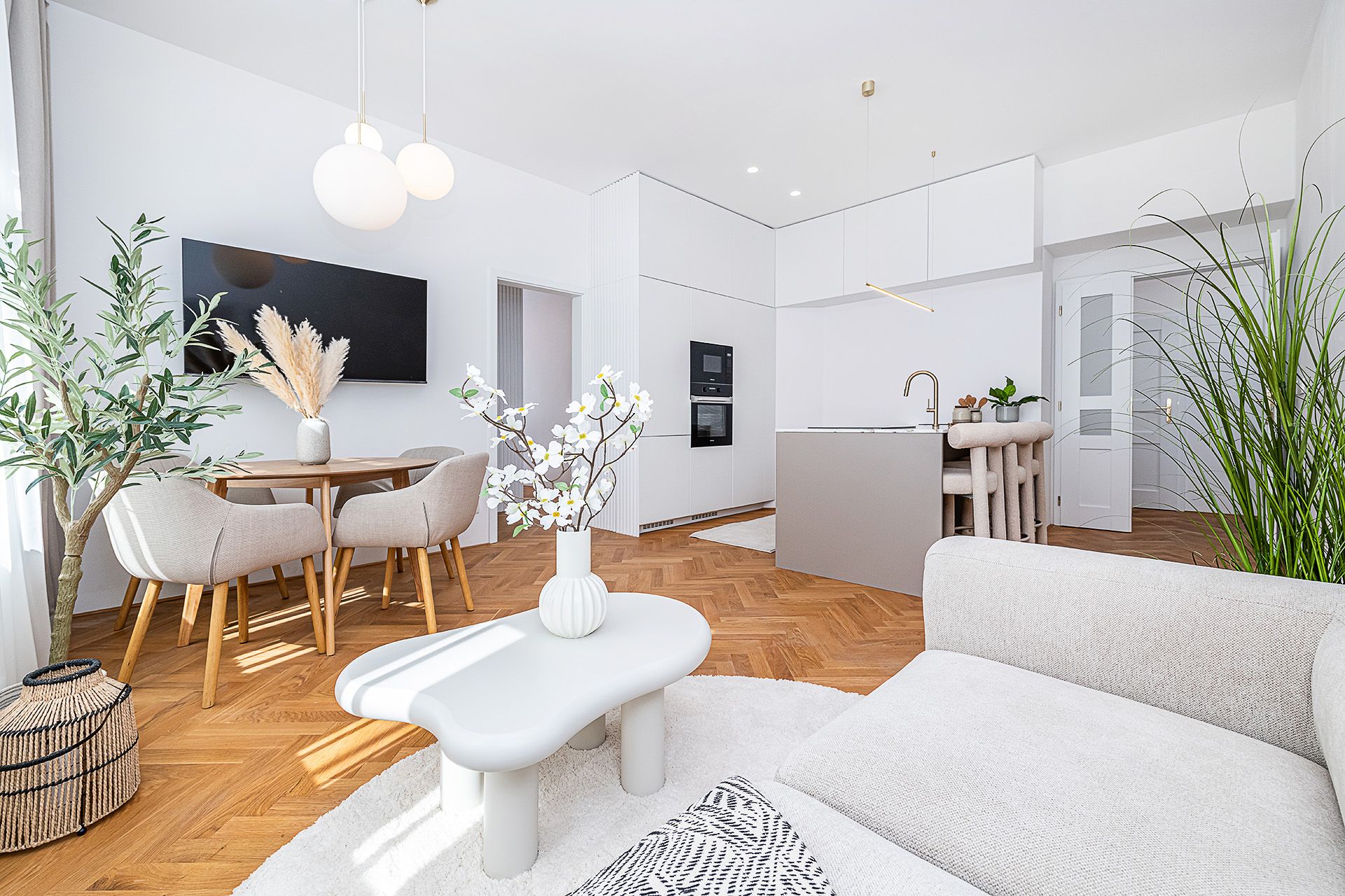 Nově dokončený a vybavený byt 3+kk v pátém patře činžovního domu po kompletní rekonstrukci na rohu ulic Norská a Kodaňská. Nalezneme zde dvě prostorné ložnice, obývací pokoj s kuchyňským koutem a výstupem na balkon s dokonalým výhledem na Heroldovy sady a vzdálený pražský horizont. Všechny pokoje bytu disponují výškou stropu 305 cm, jsou orientovány na jih a poskytují ze všech oken již zmiňovaný výhled. Jedná se o jeden z nejlepších bytů v tomto domě, známém také jako Rezidence Norská. Dům je vybaven výtahem a prošel kompletní rekonstrukcí dokončenou v lednu 2025. K bytu přísluší zděný sklep v suterénu domu. Dům je řešen jako bezbariérový, je vybaven novým hydraulickým výtahem. Jedná se unikátní nemovitost a mimořádnou příležitost k vlastnímu reprezentativnímu bydlení nebo jako dlouhodobou investici do stabilního aktiva.