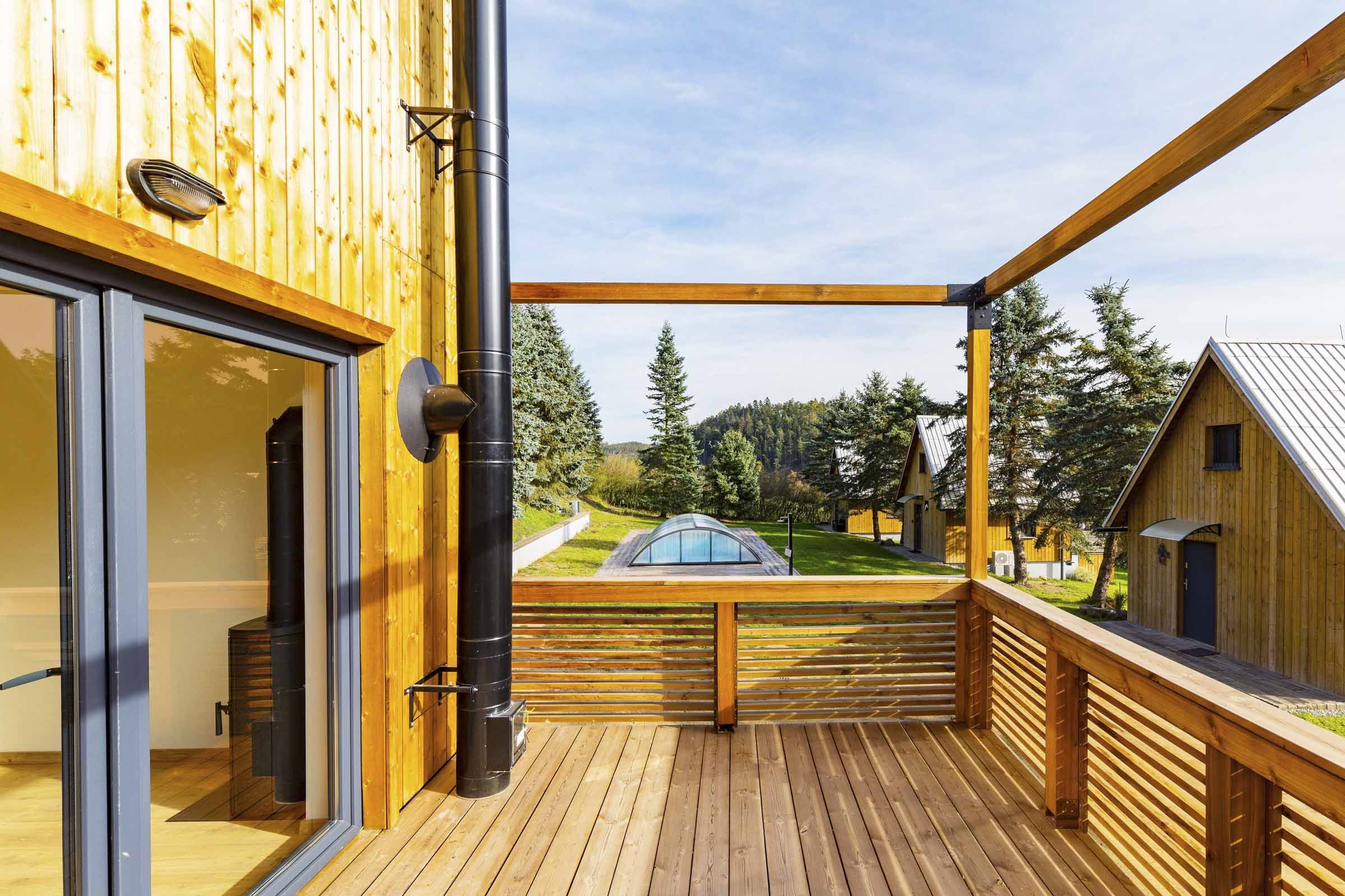 The Chaty Na Rybarne project brings a unique opportunity to own a modern holiday apartment in one of the most popular holiday areas in the Czech Republic. The holiday apartments are designed for year-round use, allowing you to not only use them for your own recreation in every season, but also to rent them out as needed. The rental yield, according to the new owners, is above average 10%, which makes the return on investment very favourable.