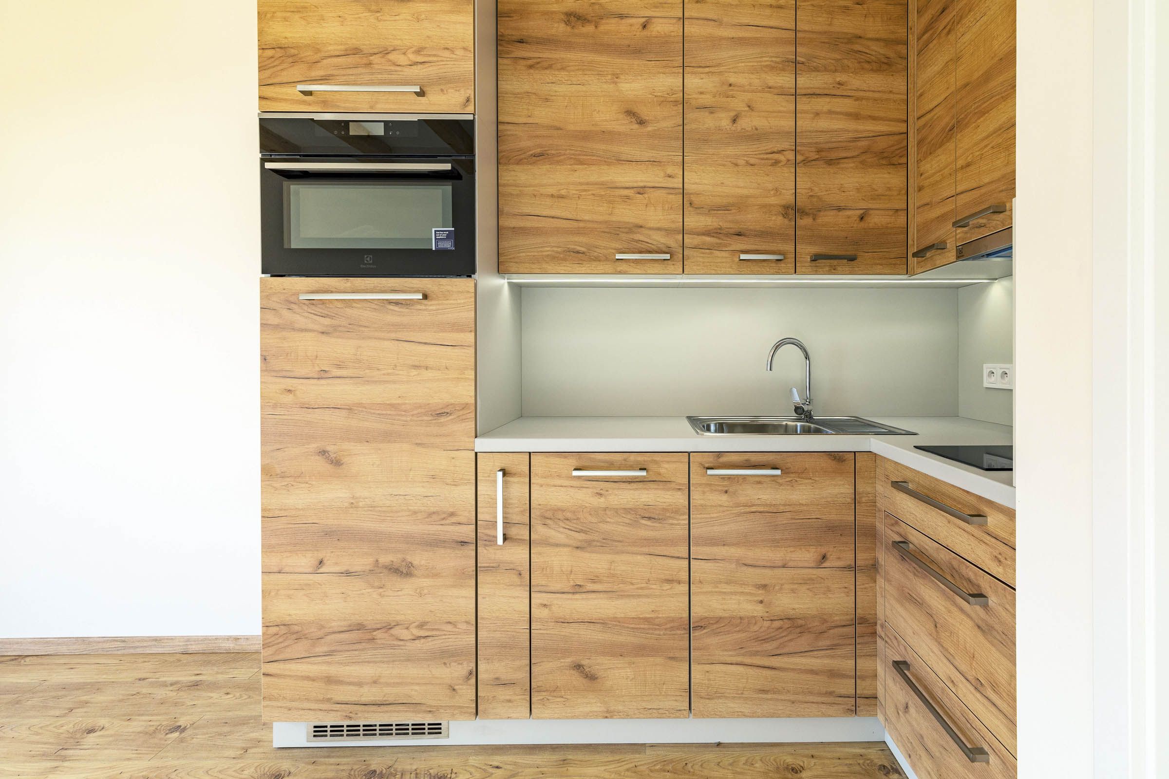 Each apartment, with a living area of 47.6 sqm, is designed to offer maximum comfort for short and long stays. On the ground floor there is a living area with kitchenette, bathroom and direct access to the terrace overlooking the surrounding forests. Under the terrace there is a lockable space of 11 m². The upper floor offers 2 spacious bedrooms. A modern bathroom and stylish interior ensure a high standard of holiday living. The apartments are equipped with stoves, air conditioning, kitchenette. There is a common garden for use.