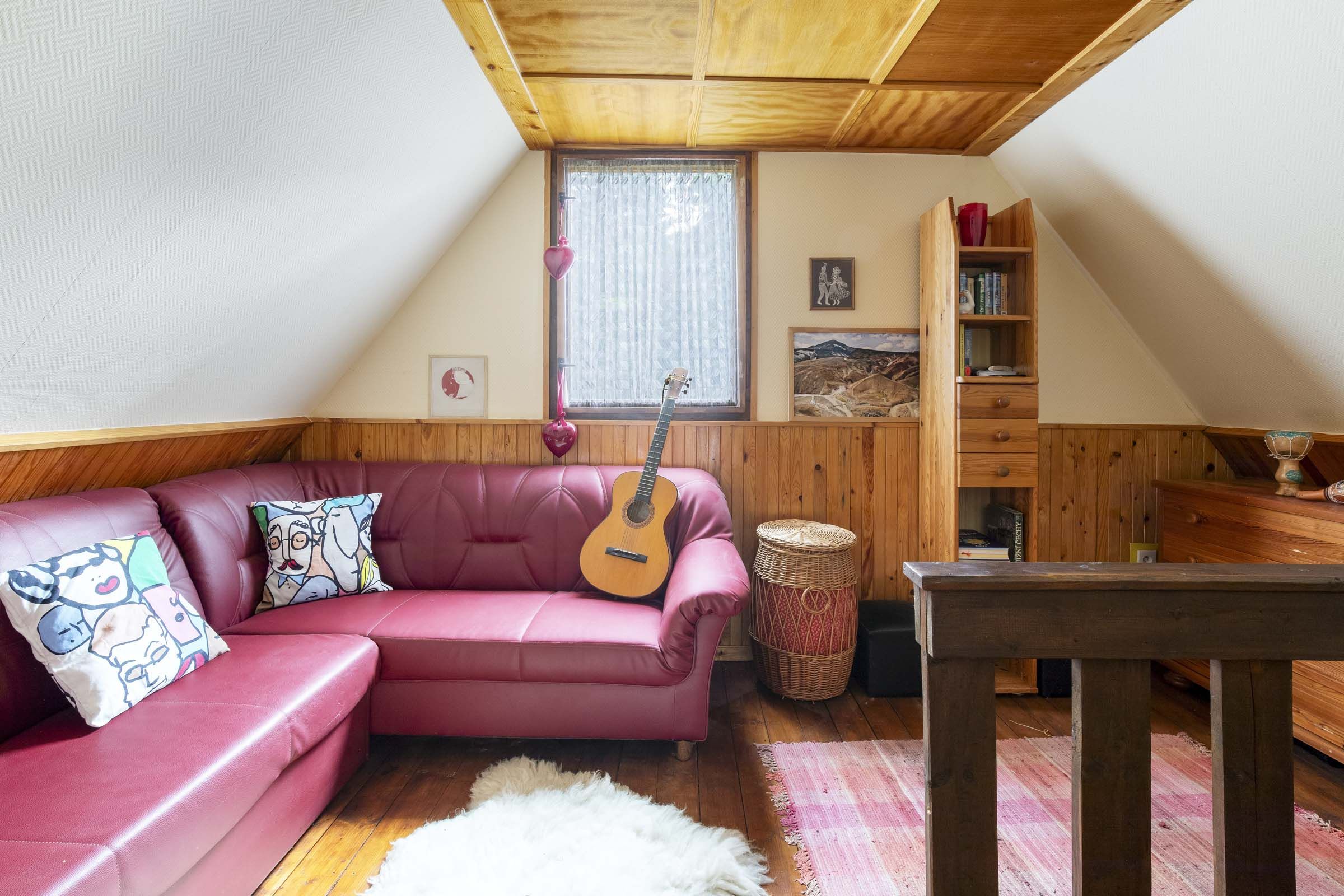 2nd floor: spacious bedroom and relaxation area above the staircase – perfect for reading, resting, or as a children’s corner.