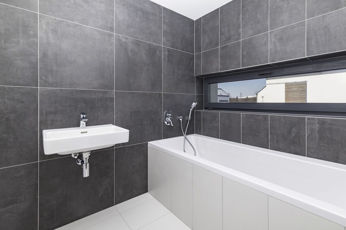 The house uses high-quality sanitary fittings from the LAUFEN brand, which stand out for their modern design and long lifespan. Bathtub faucets and a shower set from HANSGROHE give the bathrooms a premium look and maximum comfort. To enhance energy efficiency, windows with insulating triple glazing are installed, ensuring excellent thermal and sound insulation. Vinyl floors with an acoustic underlay further contribute to peaceful and comfortable living.