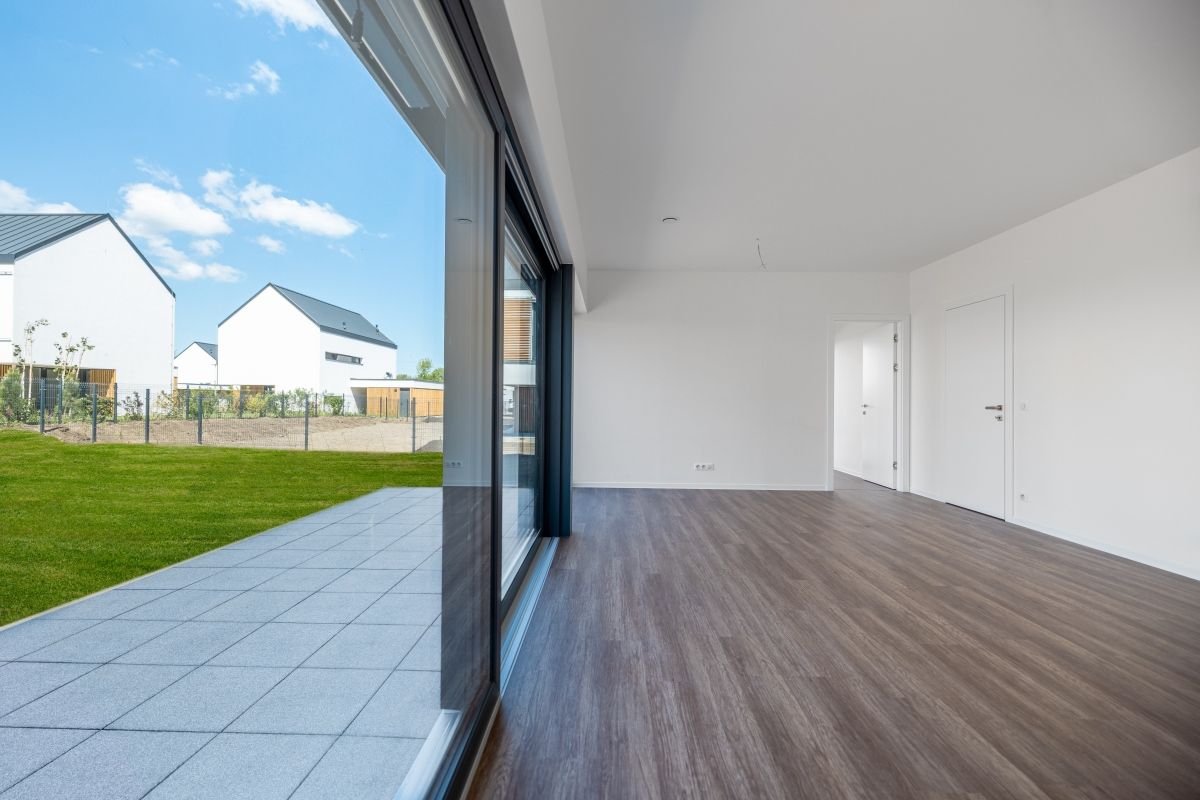 The house uses high-quality sanitary fittings from the LAUFEN brand, which stand out for their modern design and long lifespan. Bathtub faucets and a shower set from HANSGROHE give the bathrooms a premium look and maximum comfort. To enhance energy efficiency, windows with insulating triple glazing are installed, ensuring excellent thermal and sound insulation. Vinyl floors with an acoustic underlay further contribute to peaceful and comfortable living.