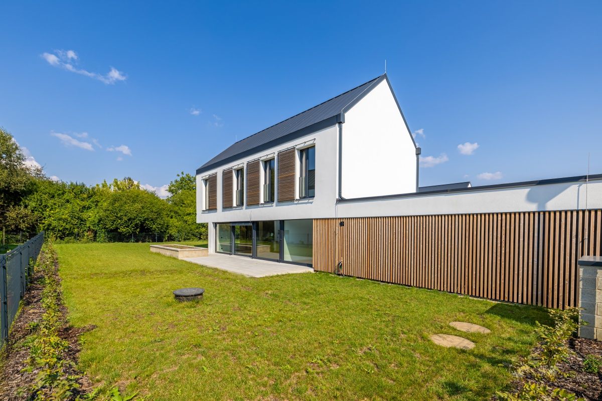 We offer for sale a family two-story five-bedroom house with a total area of 181.66 sqm, a garage for two cars (43.7 sqm), a terrace (39.2 sqm) and a garden (556 sqm), which is part of the Ctenicky haj project. This project combines comfortable and energy-efficient living with the harmony of nature and a favorable location on the northeastern edge of Prague, in close proximity to the Ctenicky lesopark and near Vinore.
