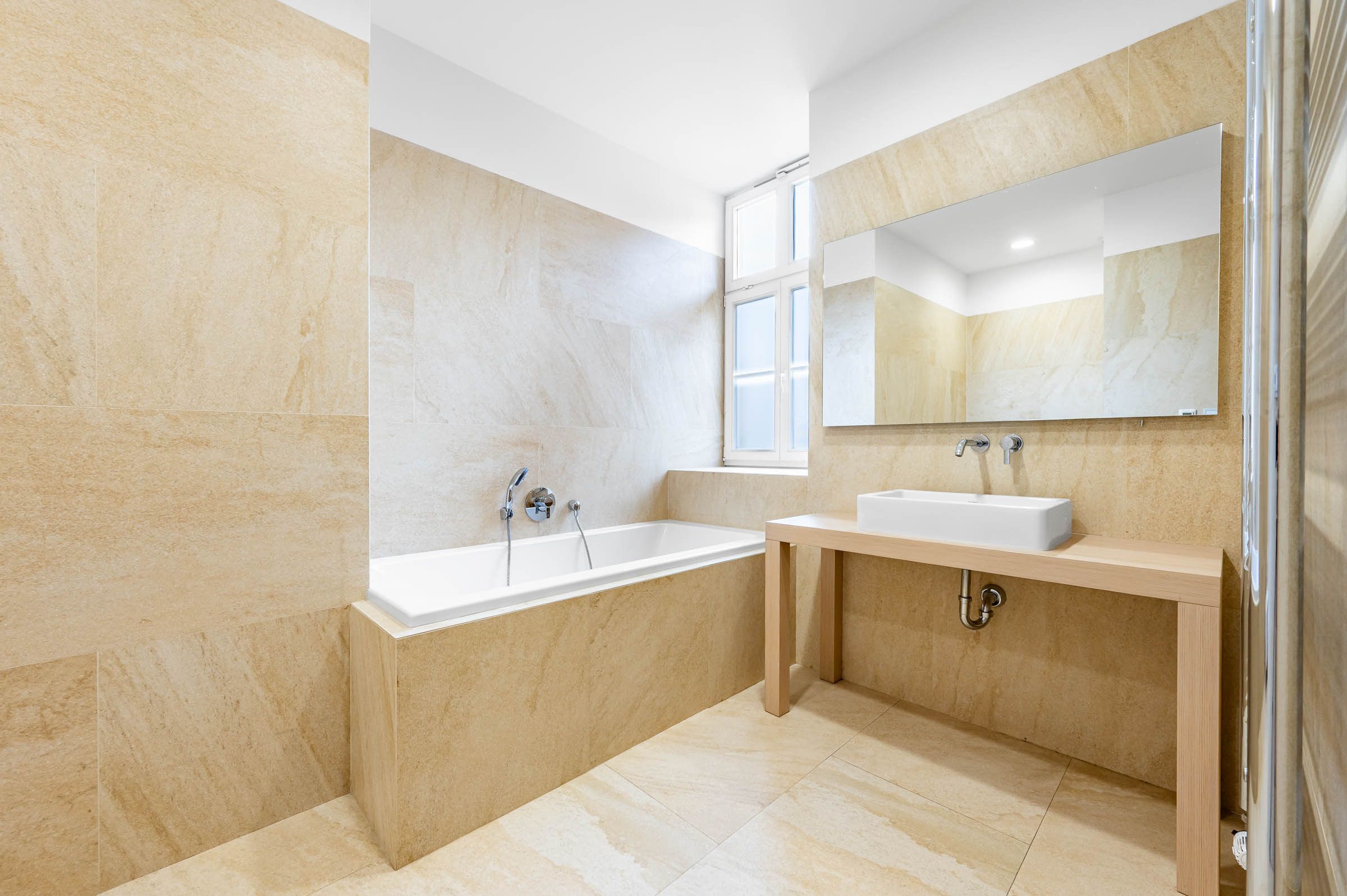 Heating is provided by a Viessmann condensing boiler, ensuring low operating costs and comfortable temperature control. The cellar storage unit is included in the sale, and parking is currently available in the courtyard of the building based on a long-term agreement with the Prague 1 Municipal District, which allows residents of the building to park there. The house is well-maintained and pleasant.