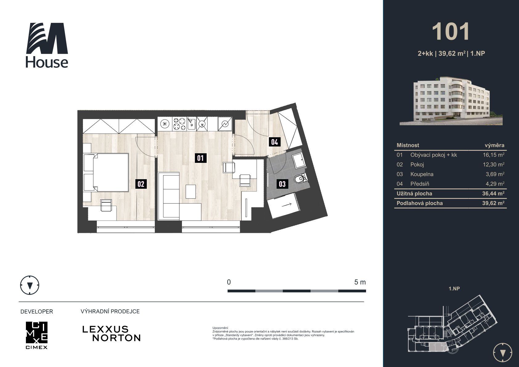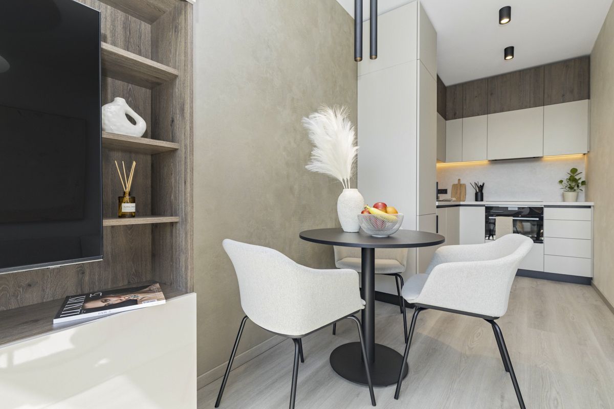 An exclusive one-bedroom accommodation unit for sale in the newly developed residential project M-House, which is synonymous with comfort, functionality, and modern living near Kubanske Square in Prague's Vrsovice district.