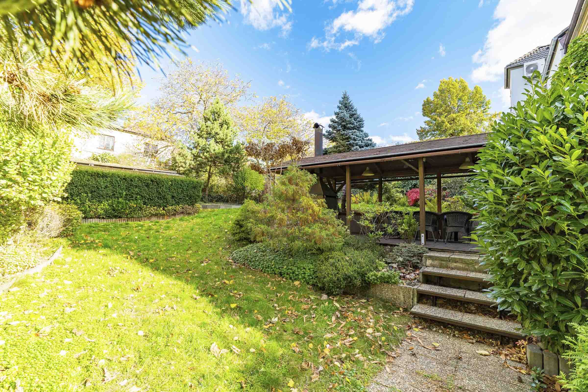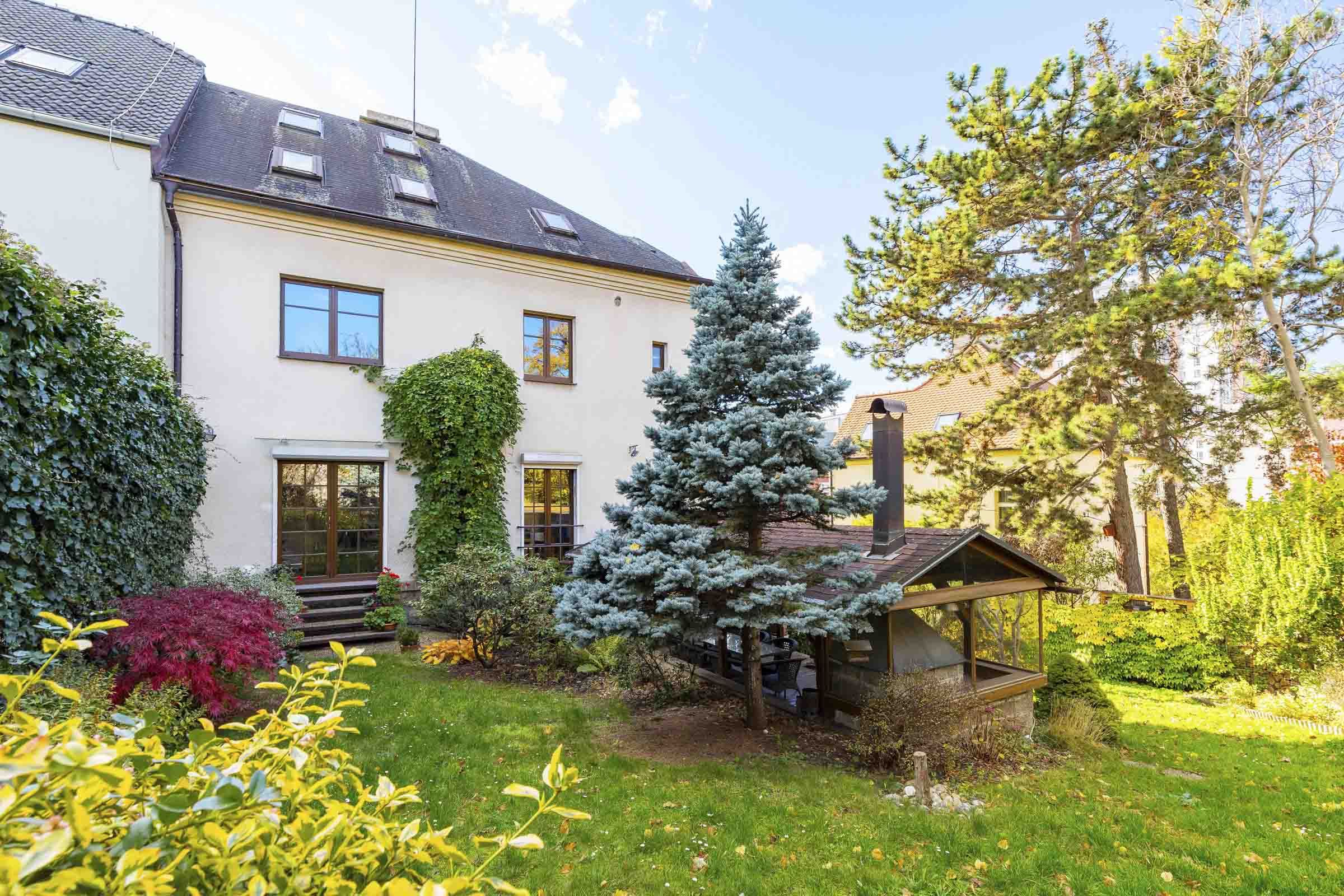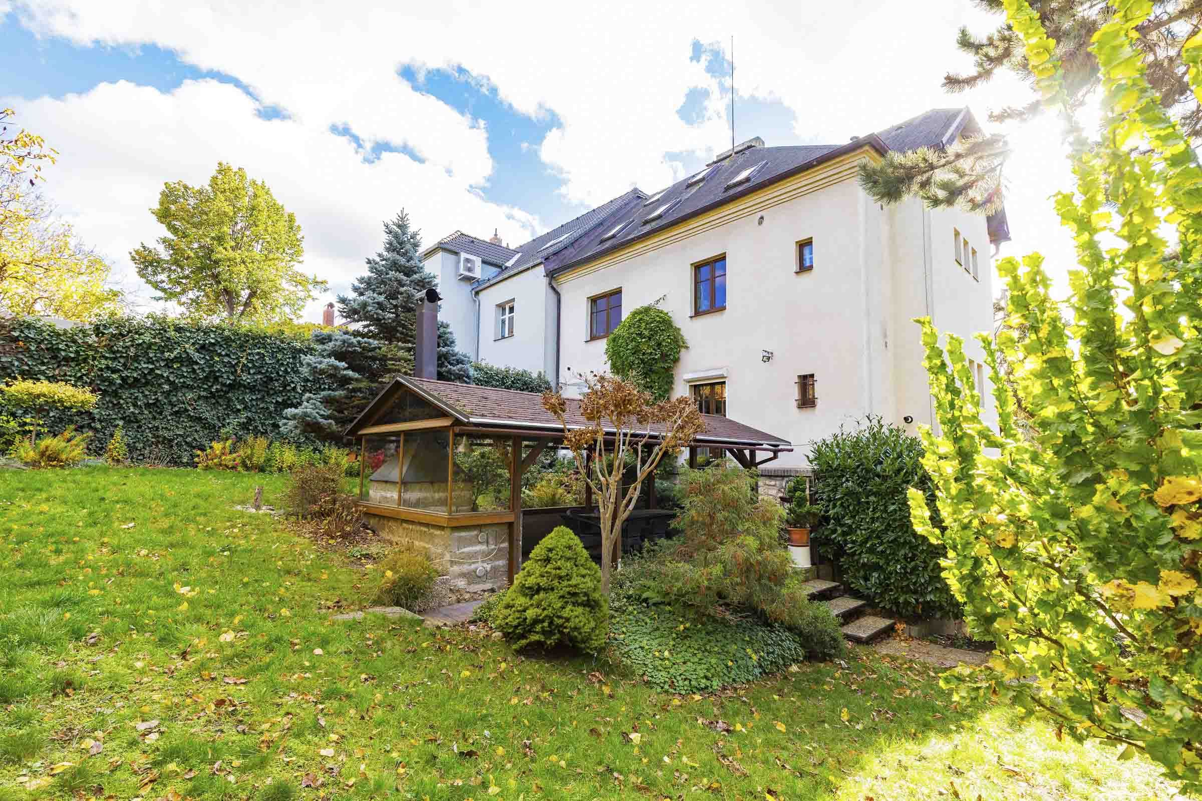 Za domem se nachází velká zahrada se vzrostlými stromy a krytým altánem s grilem. Zeleň oddělující sousední pozemky nabízí cenné soukromí a příjemné posezení po většinu roku.
