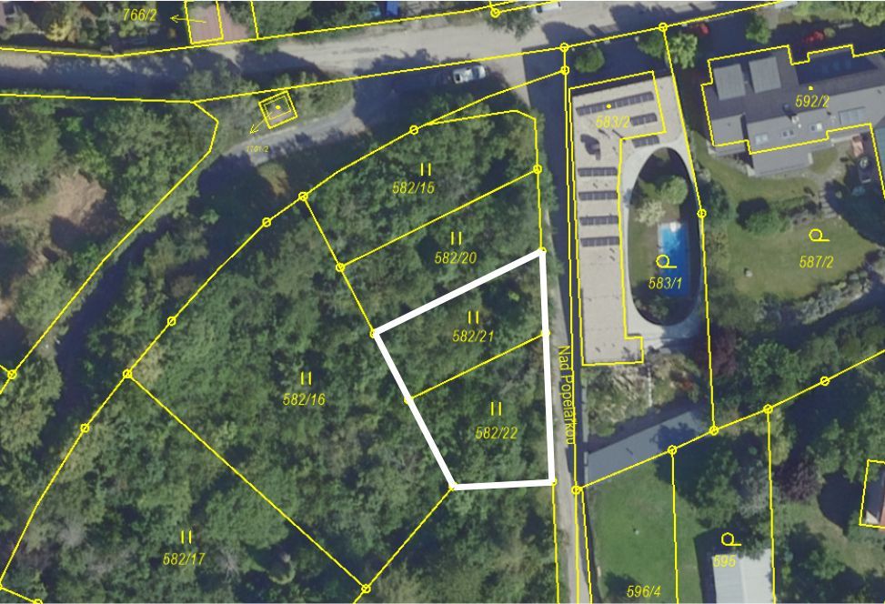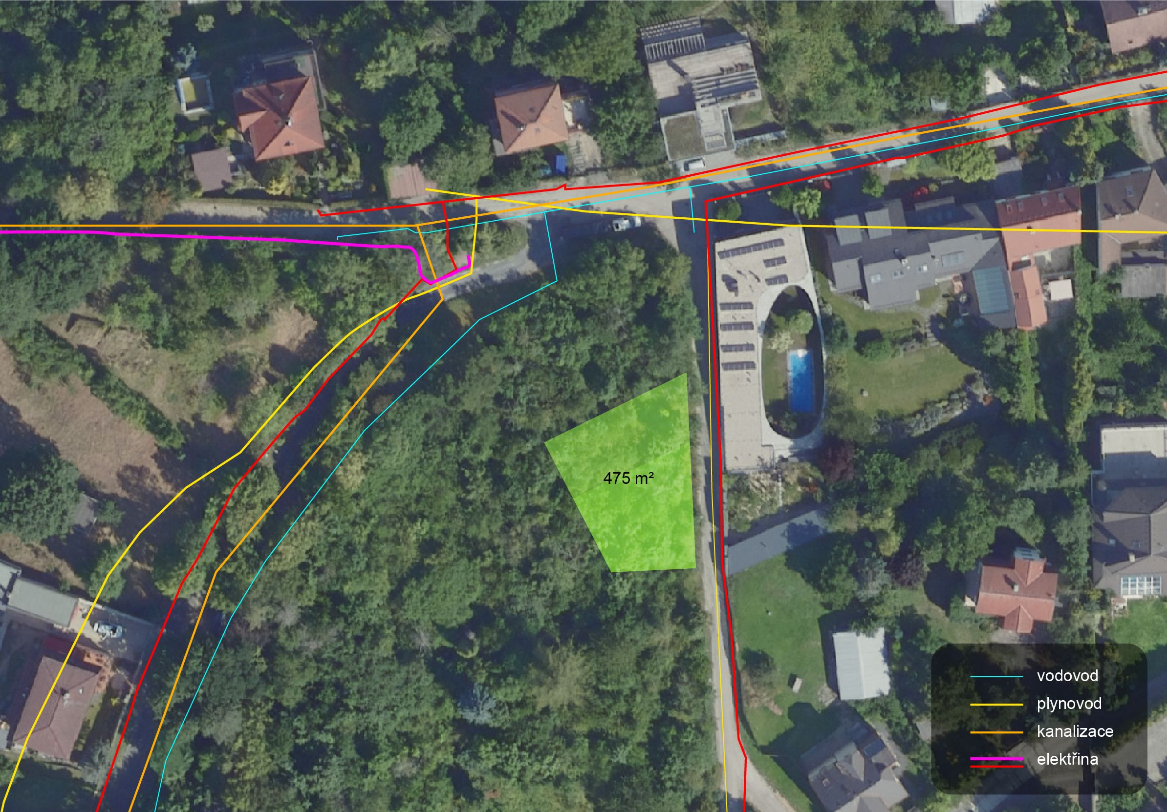 The gently sloping plot is located on Nad Popelarkou Street and provides an opportunity for an interesting architectural solution. This established villa district, characterized by low-rise family homes and villas, offers a peaceful atmosphere and plenty of privacy.