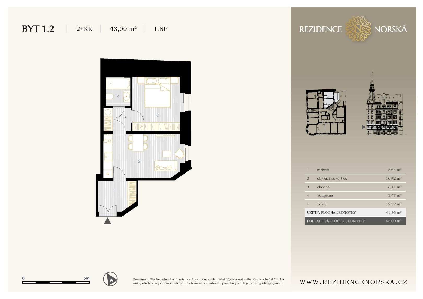 Residence Norska is located in a corner building at the intersection of Kodanska and Norska streets, directly opposite Heroldovy Sady park. The area offers a perfect combination of historic charm and modern city living — with stylish cafés, restaurants, cultural venues, and all civic amenities of Prague’s wider city center just steps away. Thanks to excellent transport connections, the city center can be reached within minutes.