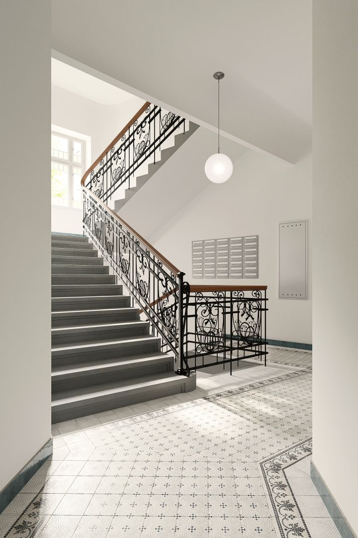 Rohový secesní dům prošel kompletní a citlivou rekonstrukcí se zachováním původních architektonických detailů ve společných prostorách. Nový výtah zajišťuje pohodlný přístup do všech pater. Projekt je dokončen a byt je ihned k nastěhování.