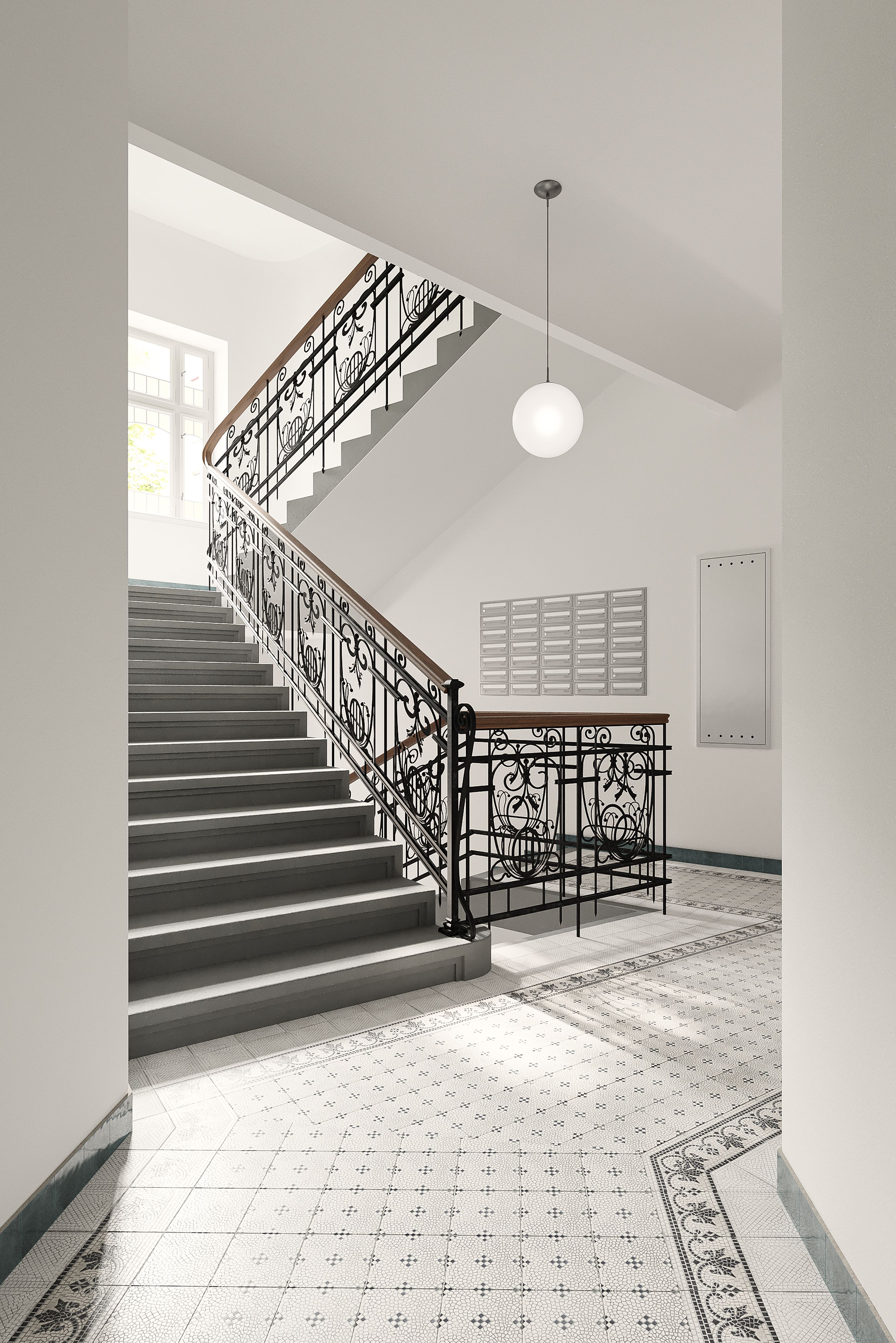 Rohový secesní dům prošel kompletní a citlivou rekonstrukcí se zachováním původních architektonických detailů ve společných prostorách. Nový výtah zajišťuje pohodlný přístup do všech pater. Projekt je dokončen a byt je ihned k nastěhování.