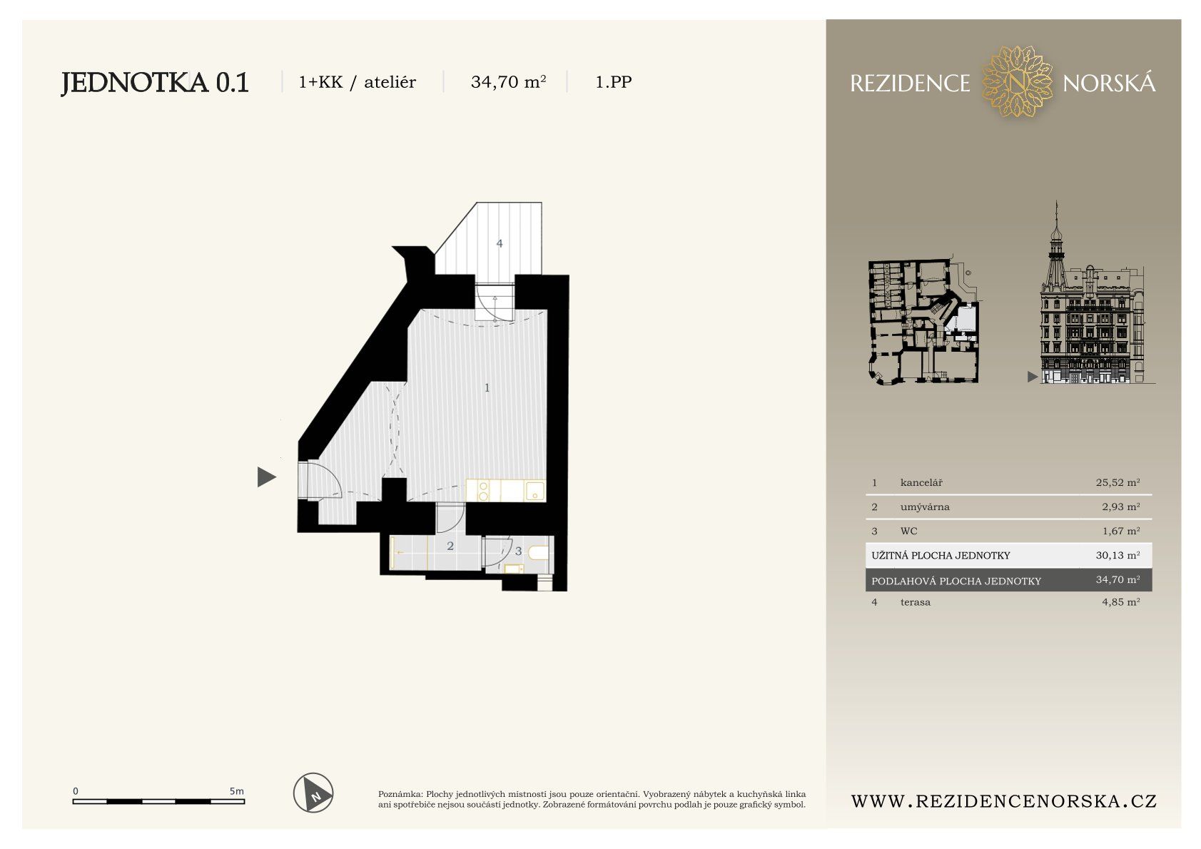 Kompaktní terasa o velikosti 4,85 m² rozšiřuje prostor o příjemné venkovní zázemí. Jednotka je výbornou volbou pro investici, zřízení kanceláře nebo jako zázemí pro podnikání.
