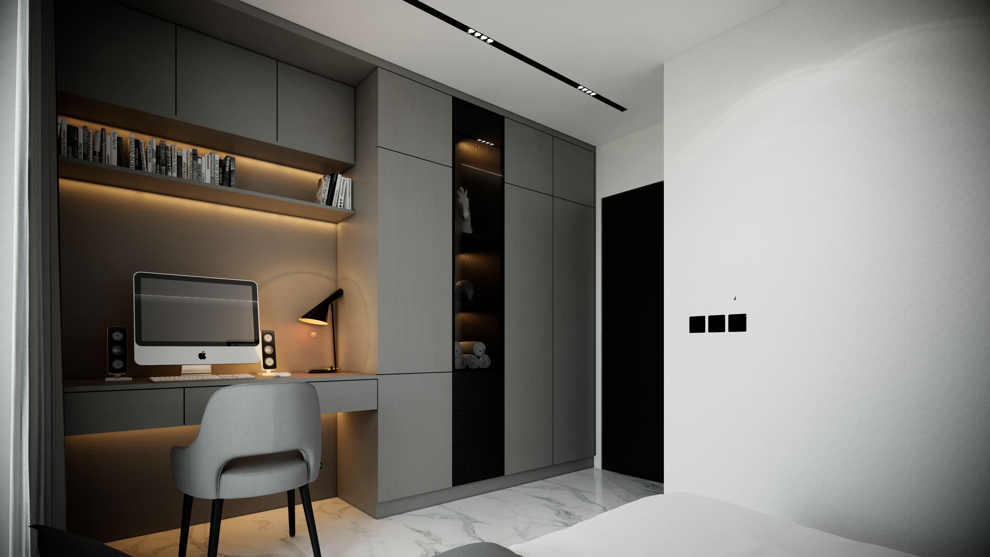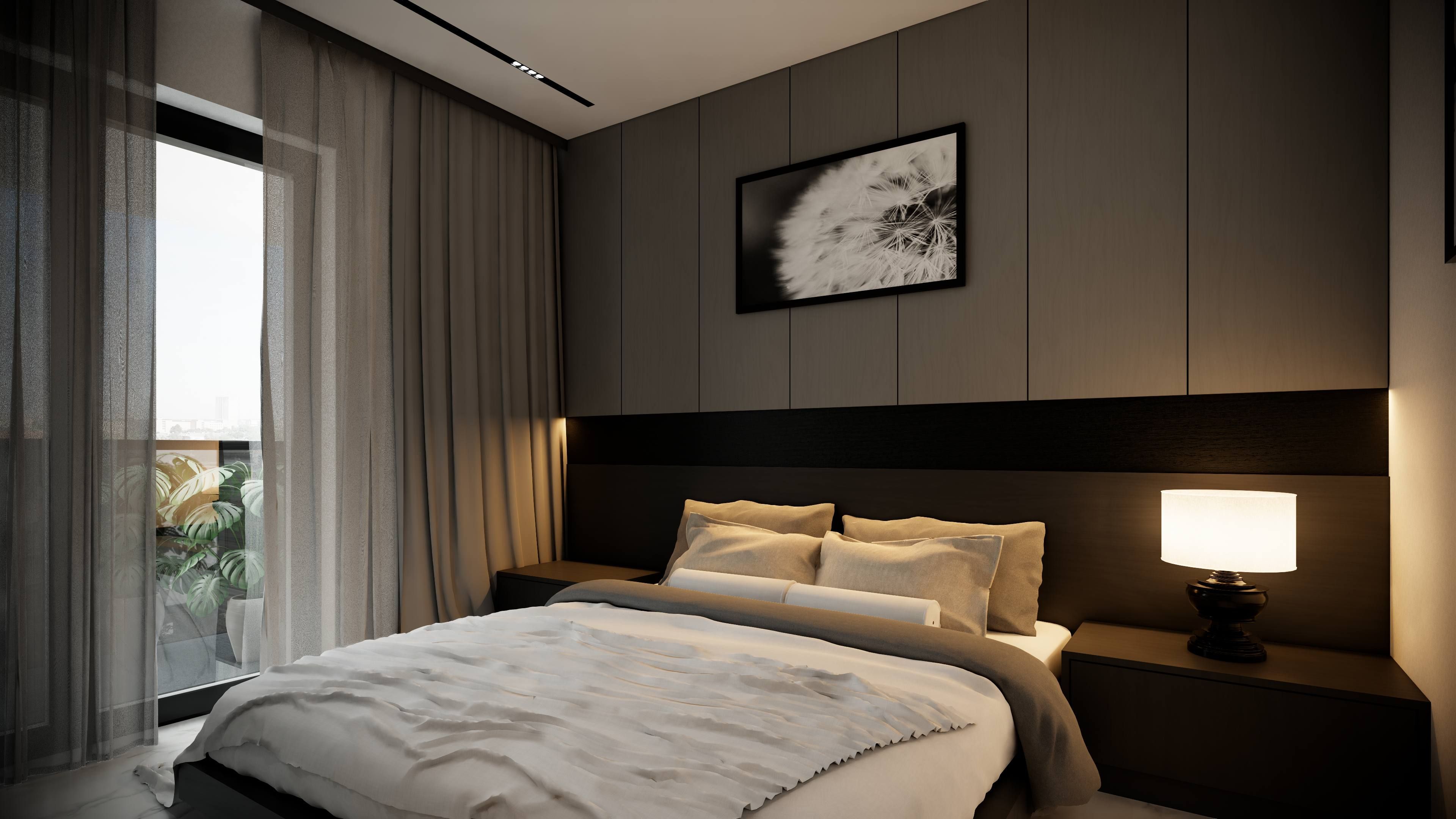 Světlý obývací pokoj s kuchyňským koutem je propojen s balkonem, který vytváří příjemné venkovní zázemí pro relaxaci i posezení. Hlavní ložnice i druhý pokoj nabízejí dostatek prostoru pro vestavěné skříně a praktické úložné systémy. Koupelna s vanou a samostatná toaleta jsou řešeny v moderním designu s důrazem na funkčnost a estetiku.