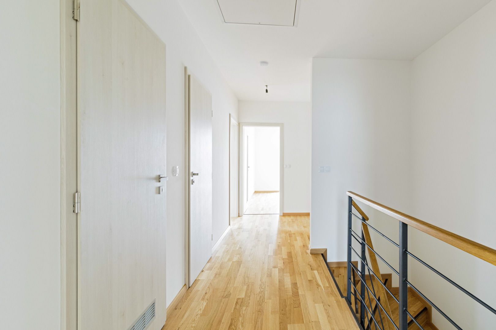 Dům s dispozicí 5+kk o celkové ploše 156,56 m² nabízí čtyři ložnice, tři koupelny, prostorný obývací pokoj s kuchyňským koutem, technickou místnost a dvě chodby. K domu náleží vlastní garáž, sedlová střecha s půdou a pozemek o velikosti 414 m².