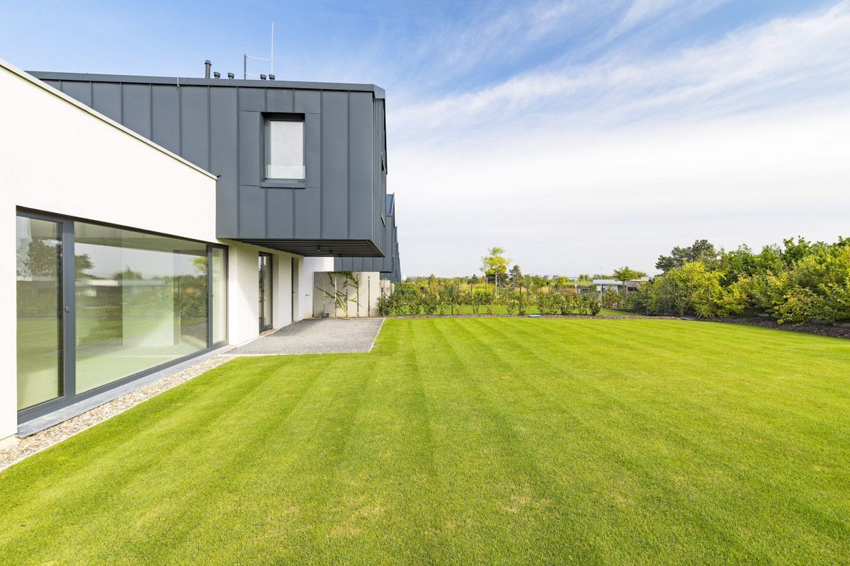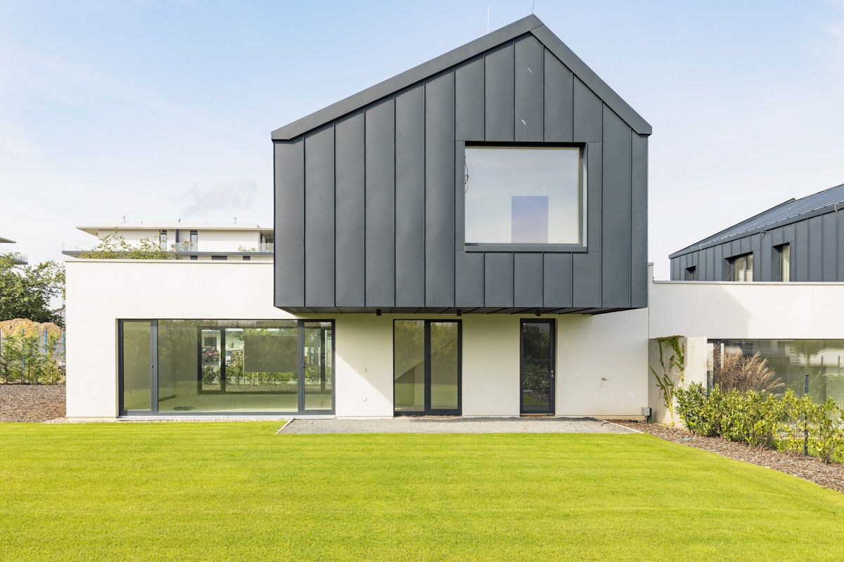 Moderní rodinný dům inspirovaný českým funkcionalismem, situovaný v uzavřeném rezidenčním areálu přímo u golfového hřiště v Hostivaři