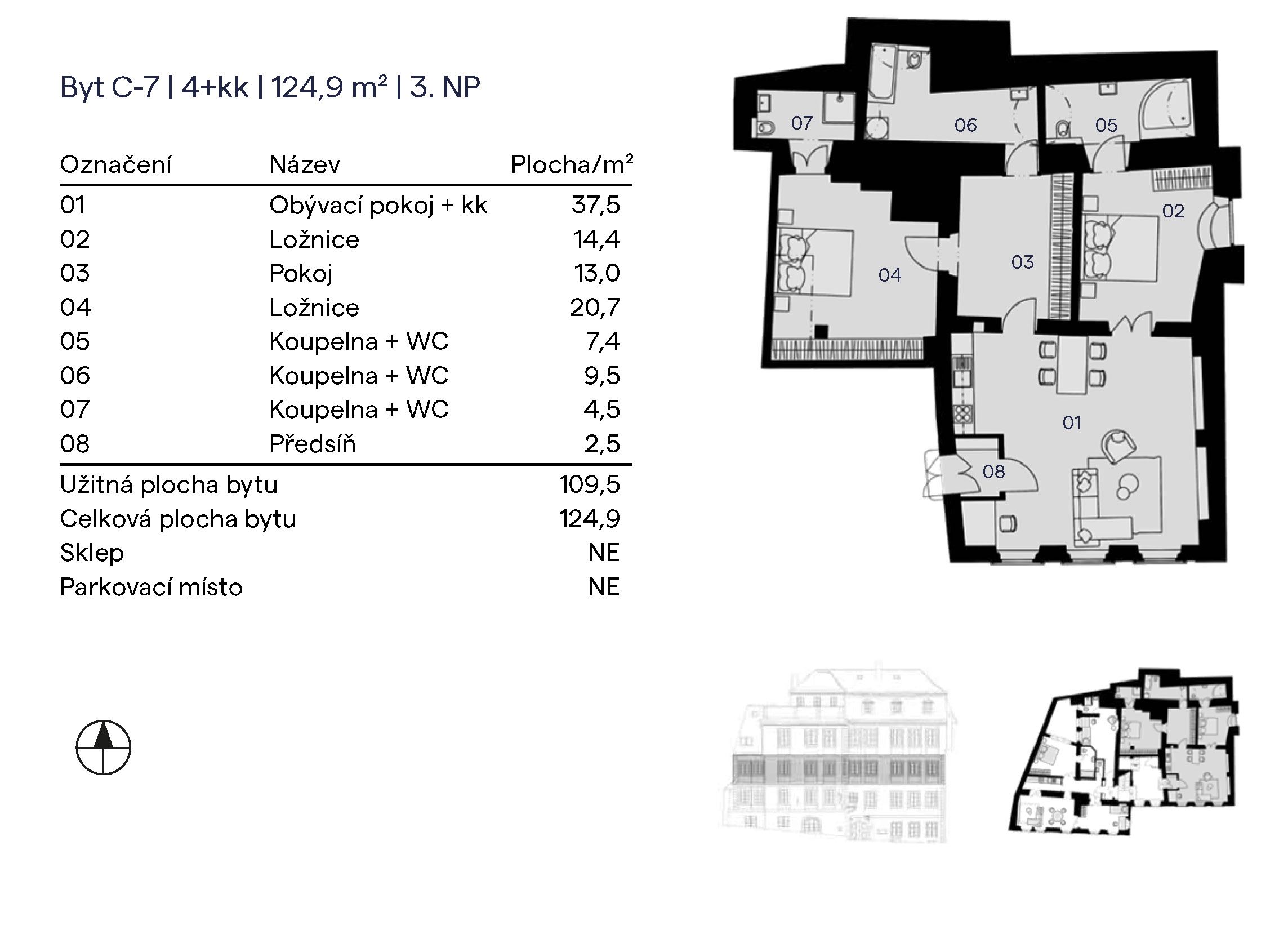 We present you an exclusive offer of a luxury three-bedroom apartment for sale with a usable area of 124.9 sqm, located in a sought-after location of Prague 1 in Mala Strana. The apartment is located on the second floor of the Rezidence Úvoz project and offers a panoramic view of Petrin directly from the living room. The history of the building dates back to the reign of Charles IV., which gives it a unique atmosphere.