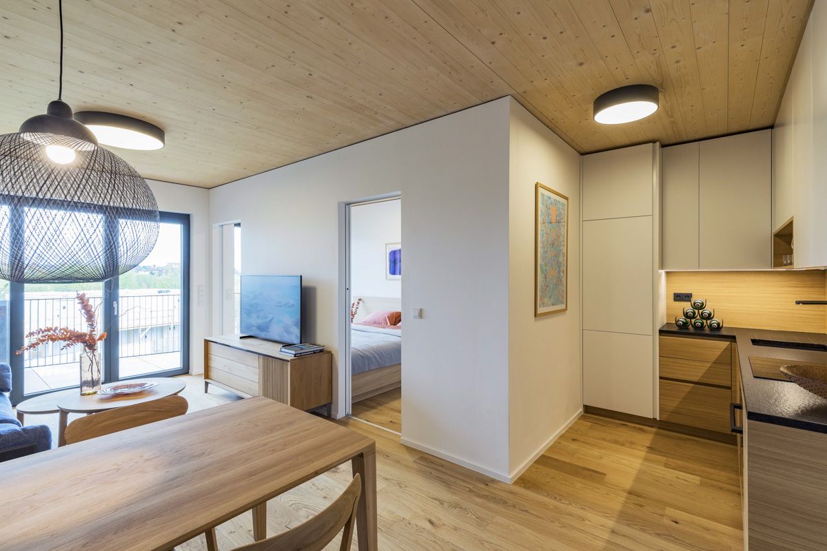 Timber Praha, udržitelná dřevostavba bytového domu a zcela první projekt svého druhu v Praze. Vysoce kvalitní bydlení s dobrou energií, nadčasovým designem a kreativním duchem. Byt 2+kk k prodeji, který splňuje všechny uvedené benefity doplňuje kompletní občanská vybavenost a perfektní dostupnost do Prahy.