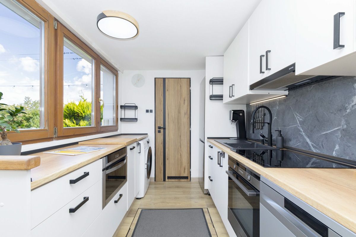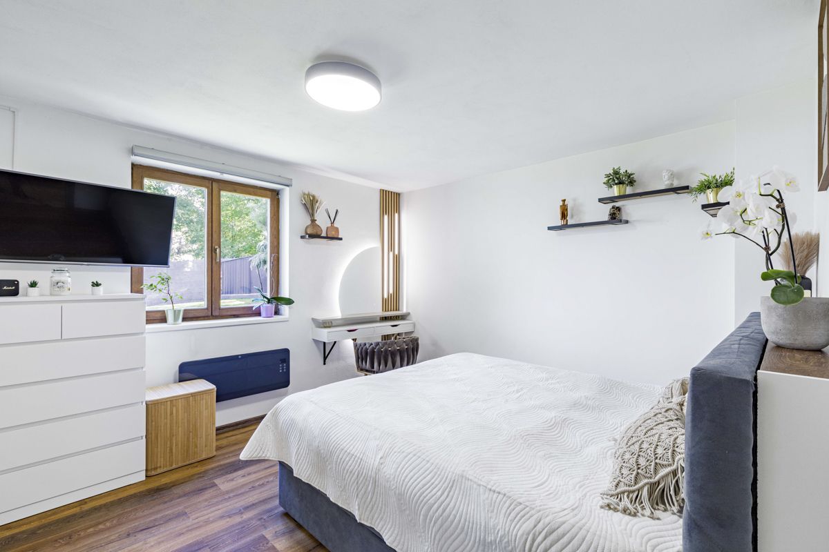 The property is sold furnished as agreed. Heating is provided by modern Concept electric radiators and a Jotul fireplace insert. Hot water is supplied by a boiler. The kitchen is fully equipped with Concept and Gorenje appliances – including a steam oven, dishwasher, refrigerator, and washing machine. Security is ensured by new Komsta entrance doors.