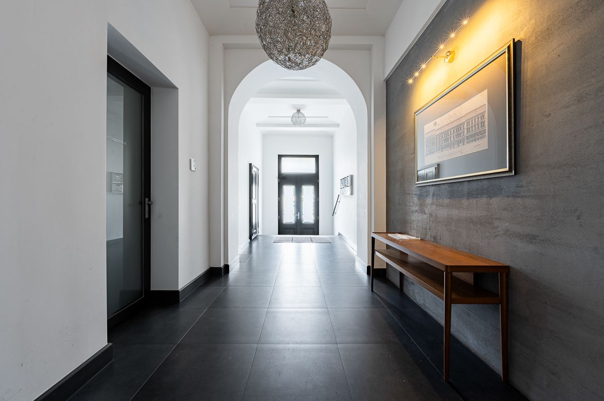 Tento byt je designově zařízený a disponuje vstupní chodbou, velkorysým obývacím pokojem s krbem a plně vybaveným kuchyňským koutem s jídelní částí, 3 ložnicemi, 1 pracovnou, 2 koupelny, samostatnou toaletou, velkoryse řešenou šatnou a 2 technickými místnostmi. K bytu náleží garáž ve dvoře až pro 3 vozy za příplatek.