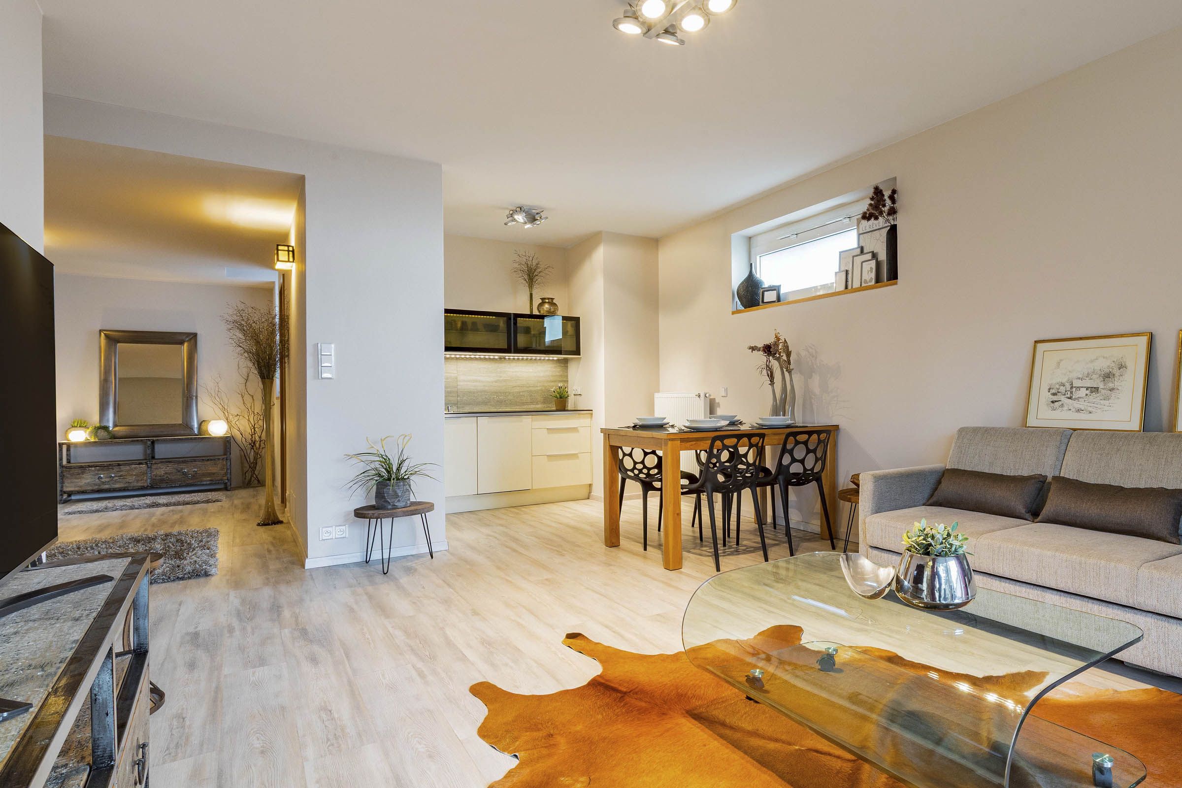 This modern apartment for rent offers an entrance hall, a sunny living room with a fully equipped kitchenette, an elegant bedroom, a bathroom with bath and a separate toilet. The apartment has a terrace. Parking is available by arrangement.