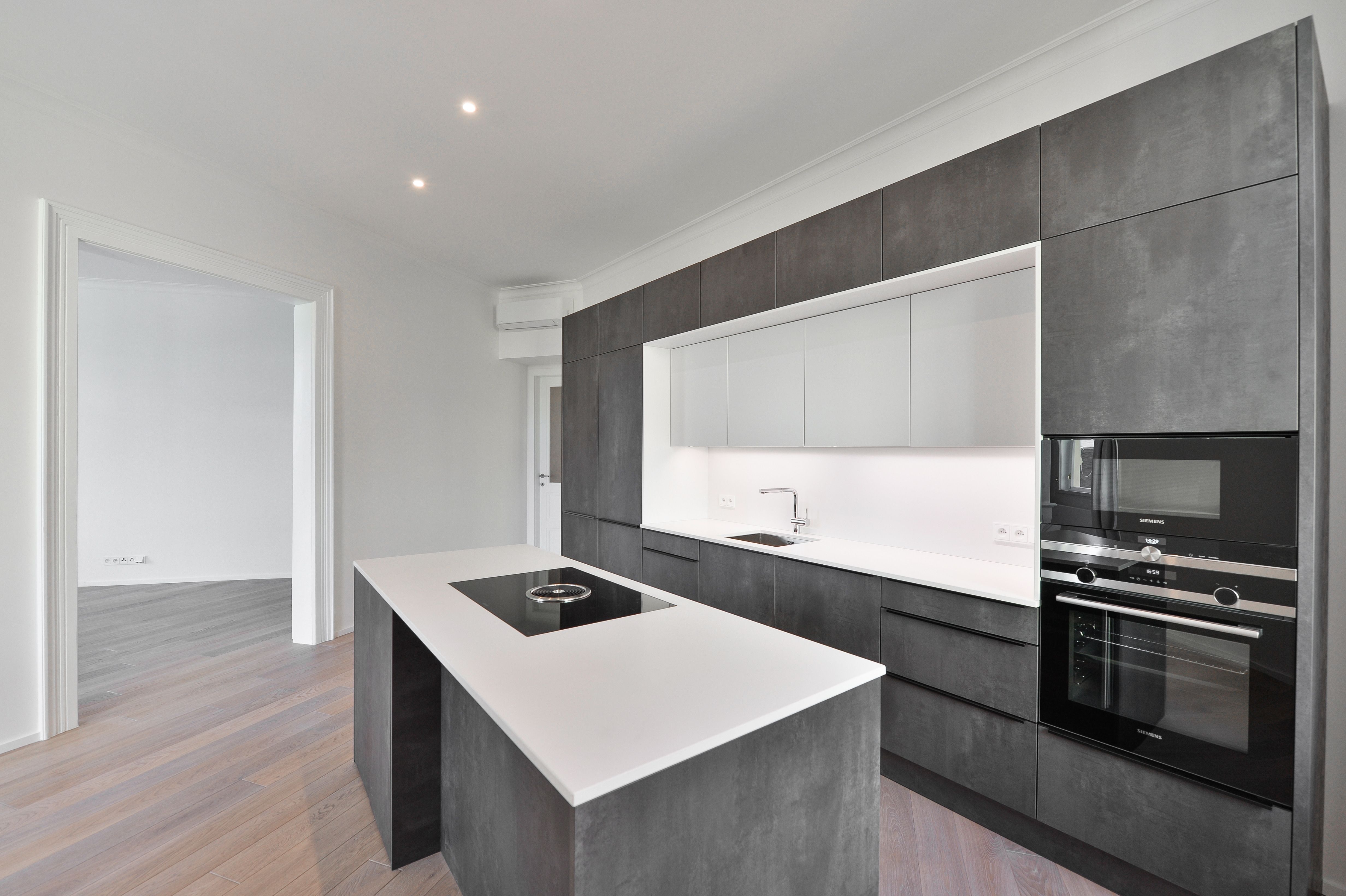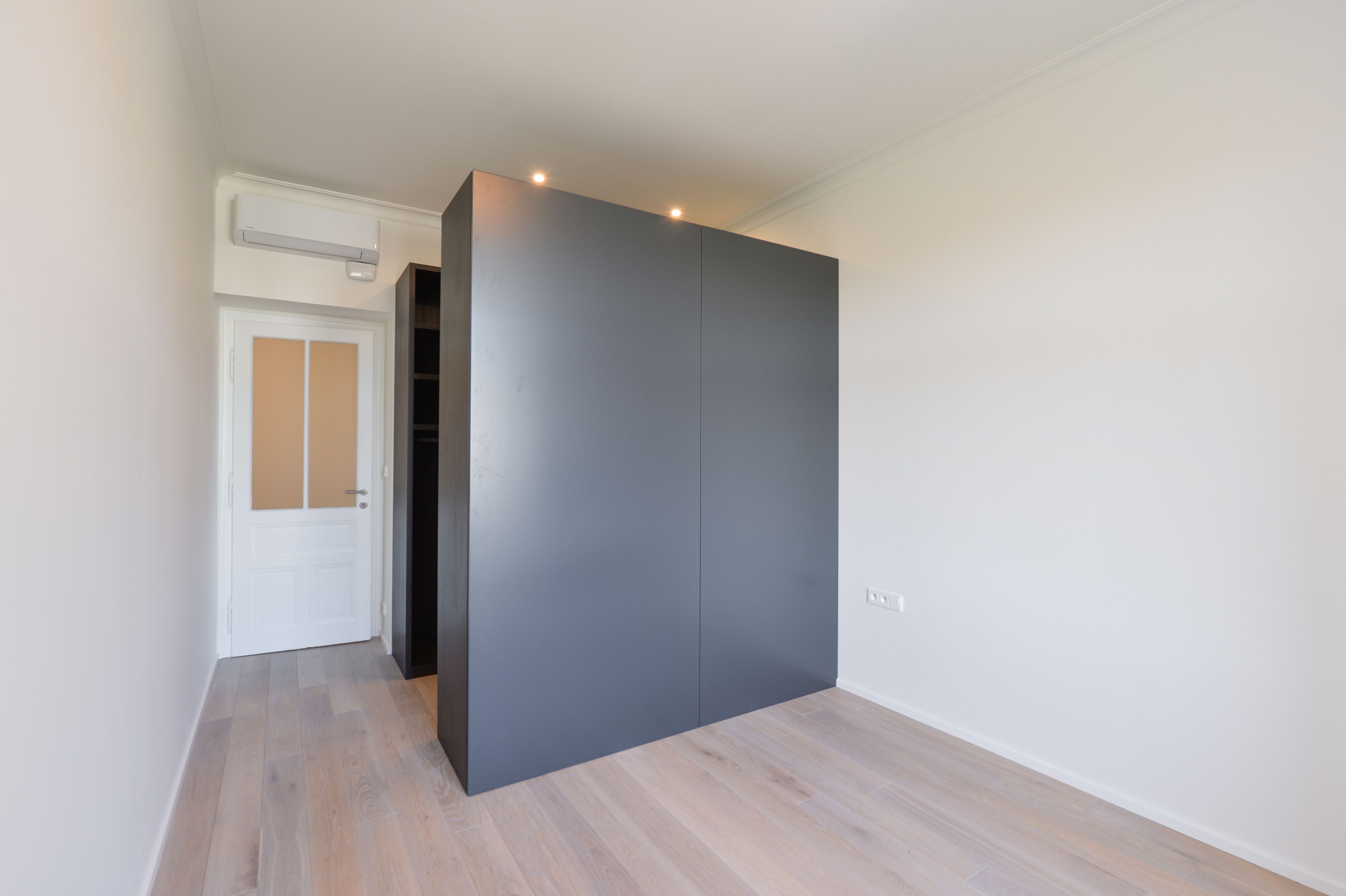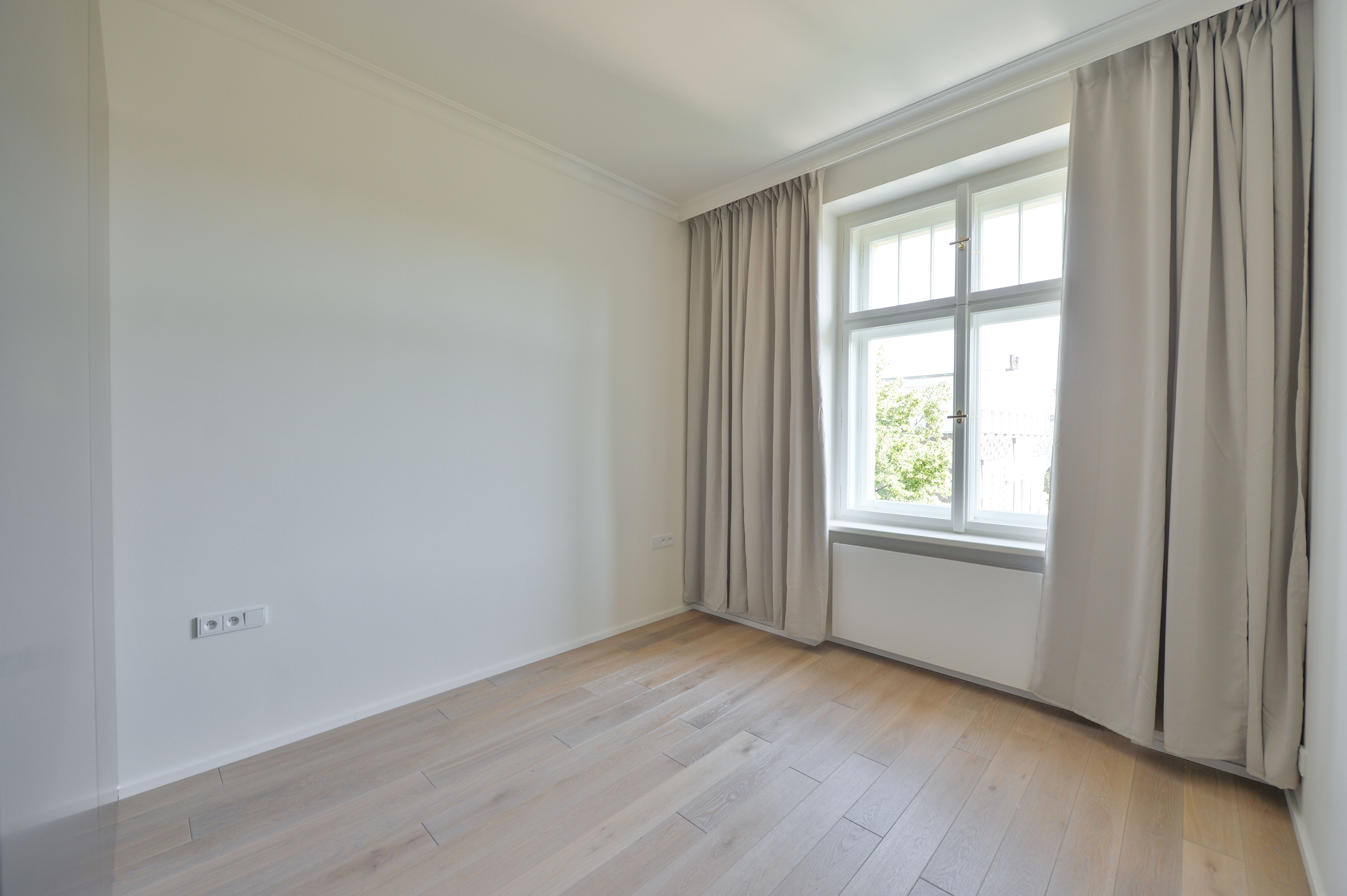 The apartment is equipped with built-in wardrobes, air conditioning, a wine cooler, a washing machine, and a dryer. The kitchenette is equipped with a dishwasher, oven, stove, refrigerator, and freezer. The flooring consists of high-quality oak floors, and the new windows in the apartment have double glazing.