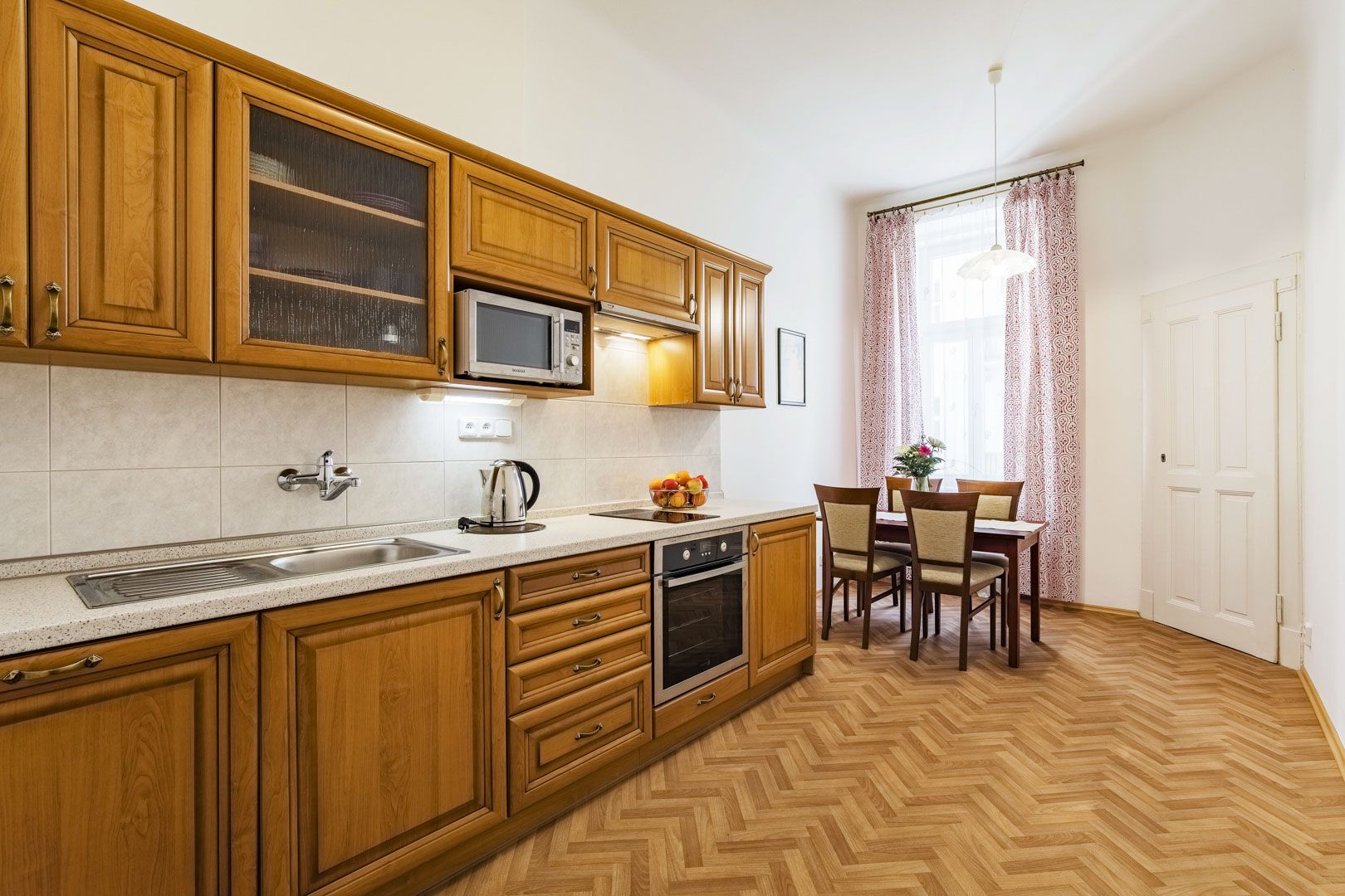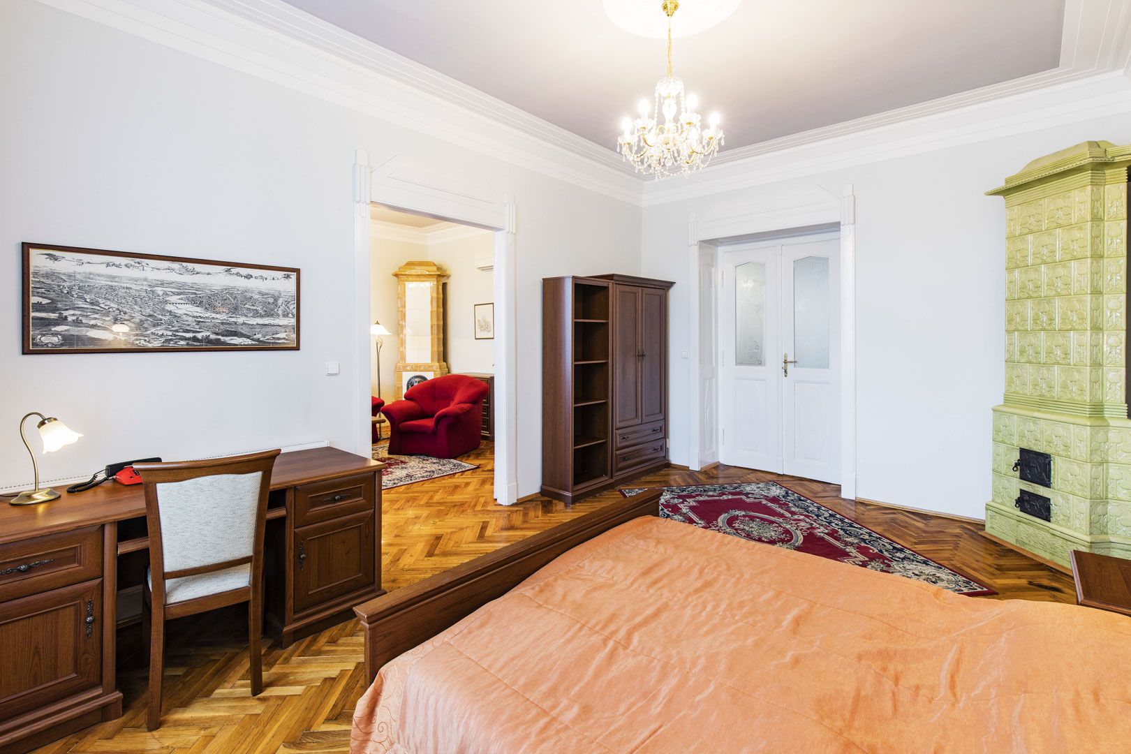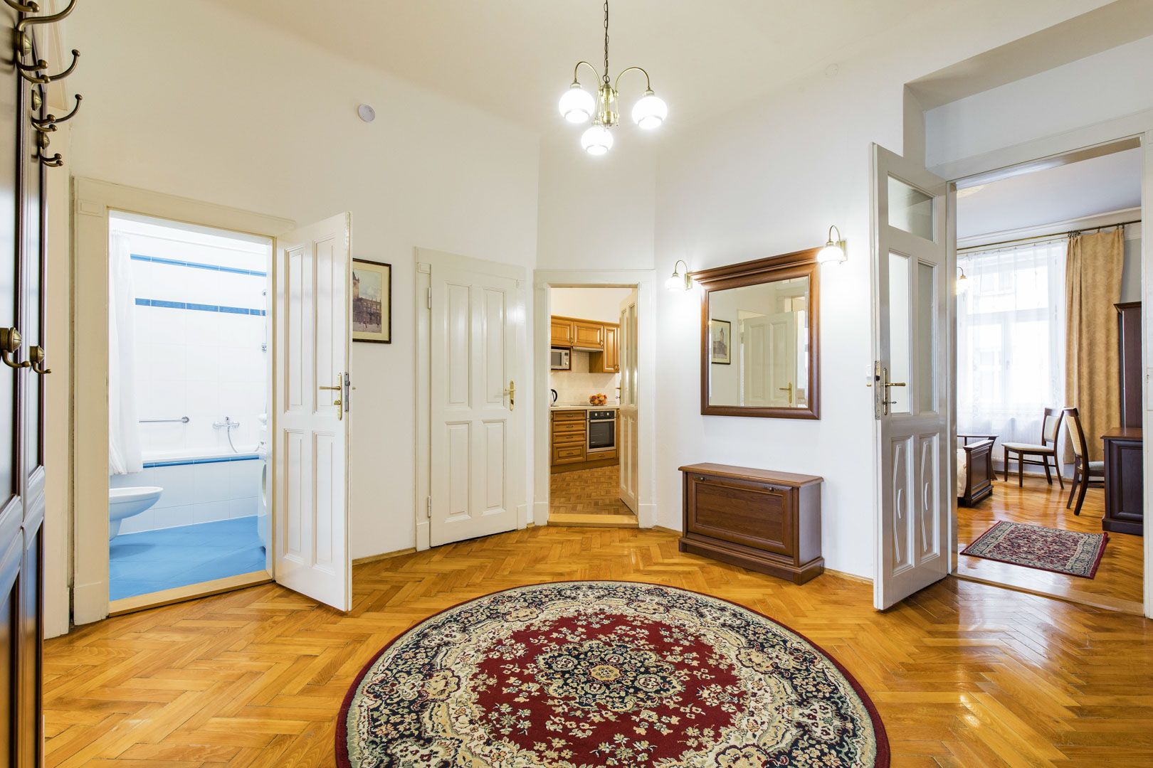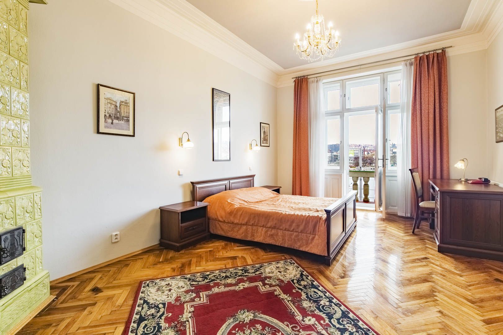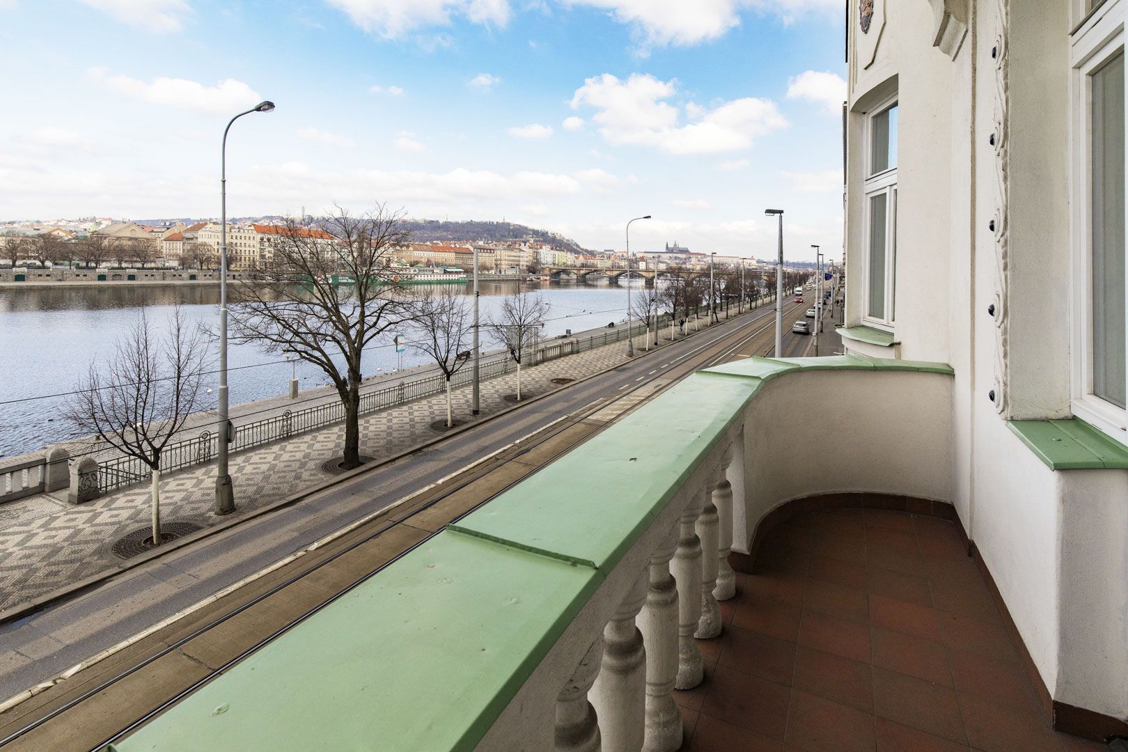 We offer for rent a 100 sqm apartment with a balcony overlooking the Vltava River and Prague Castle, located on the 1st floor of an Art Nouveau building from 1913 in the historic center of Prague on the banks of the Vltava River with a reception.