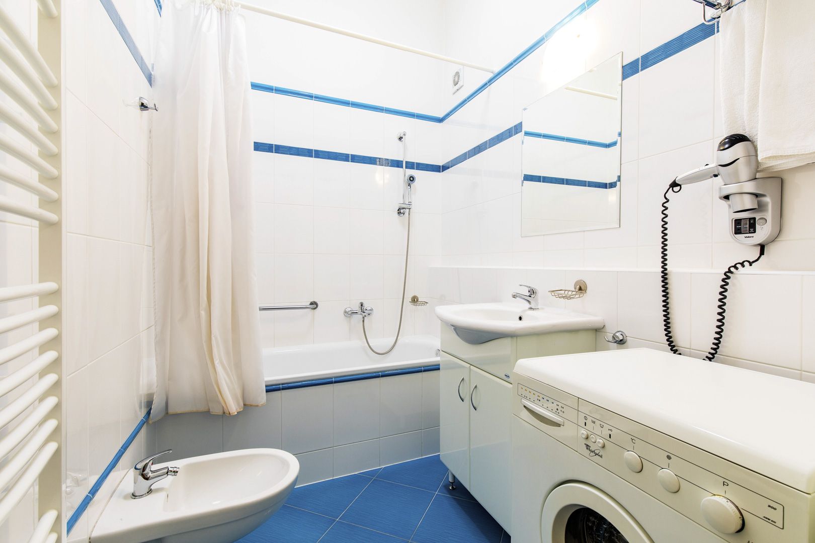The apartment is fully furnished and equipped with air conditioning, a wall safe, TV/SAT connection&high-quality internet connection, a decorative tile stove, wardrobes, beds, a sofa set, a dining set, ceramic hob, oven, refrigerator, freezer, microwave, and dishwasher.