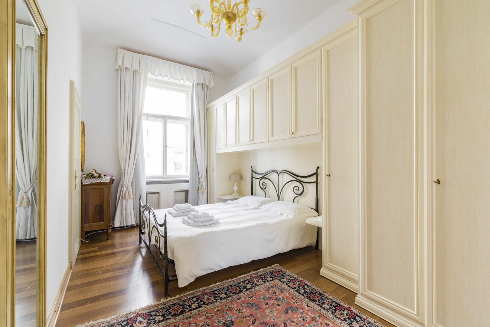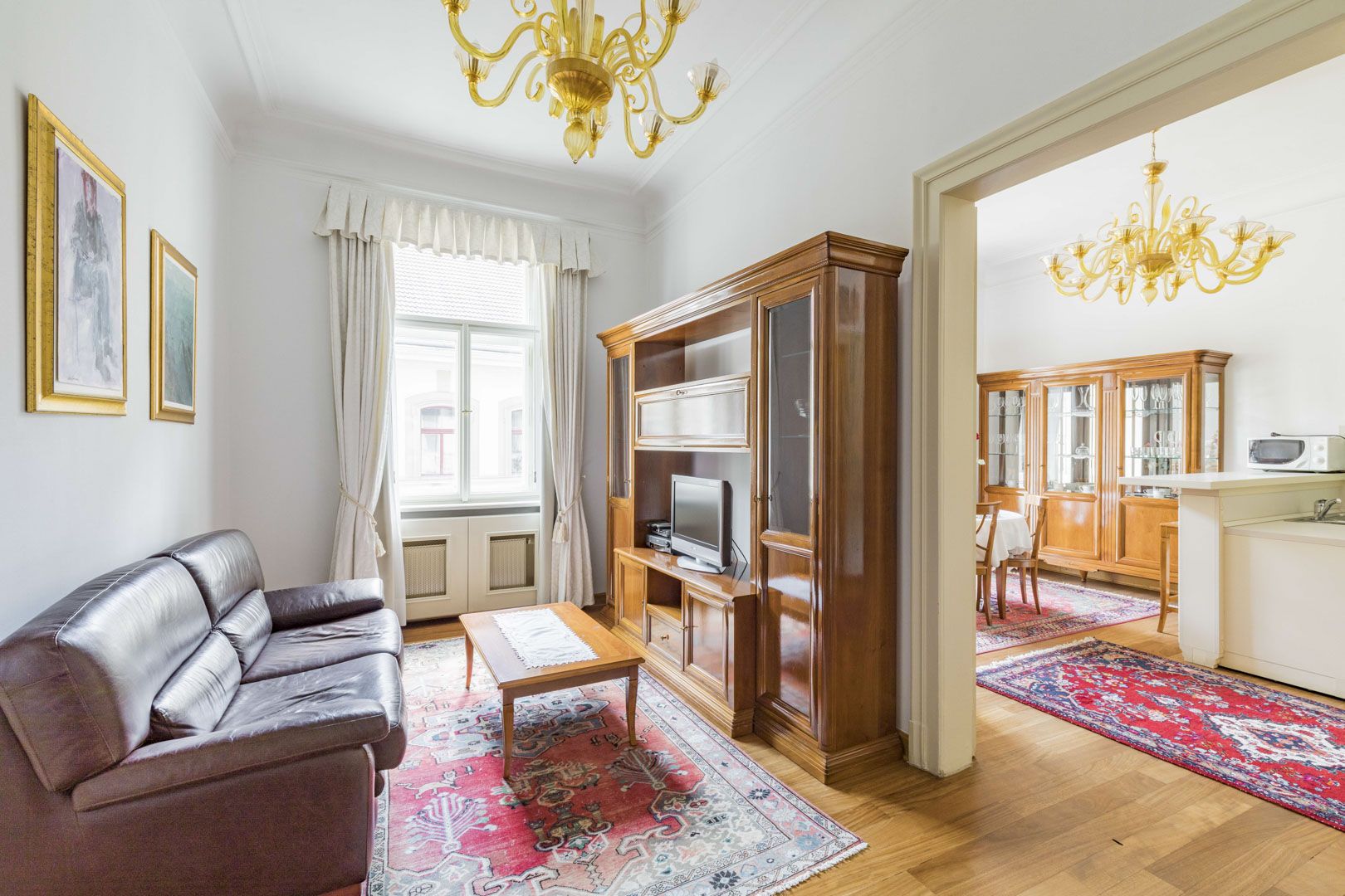 Spacious one-bedroom apartment with balcony for rent is situated on 2nd floor of residential building in center of Prague 1