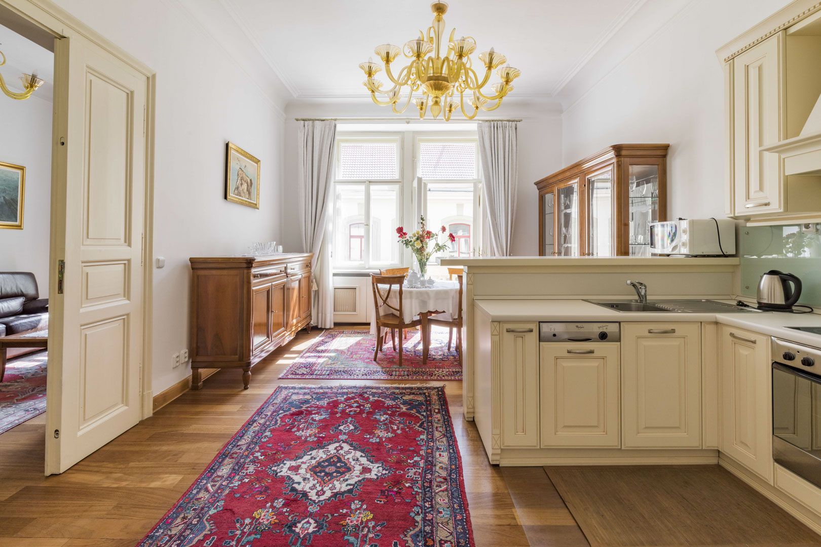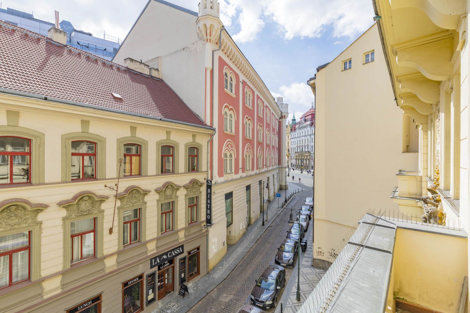 Walking distance from the Republic Square and Hastalske namesti, OD Kotva, shopping center Palladium, metro station Namesti Republiky, as well as the possibility of visiting one of the nearby theaters - Divadlo Hybernia or Divadlo v Dlouhe. Excellent accessibility to the adjacent schools and gymnasiums or to the Old Town Square. Romantic walks can then be enjoyed to the full in the nearby Lannova Park or Za Svatynemi Garden.