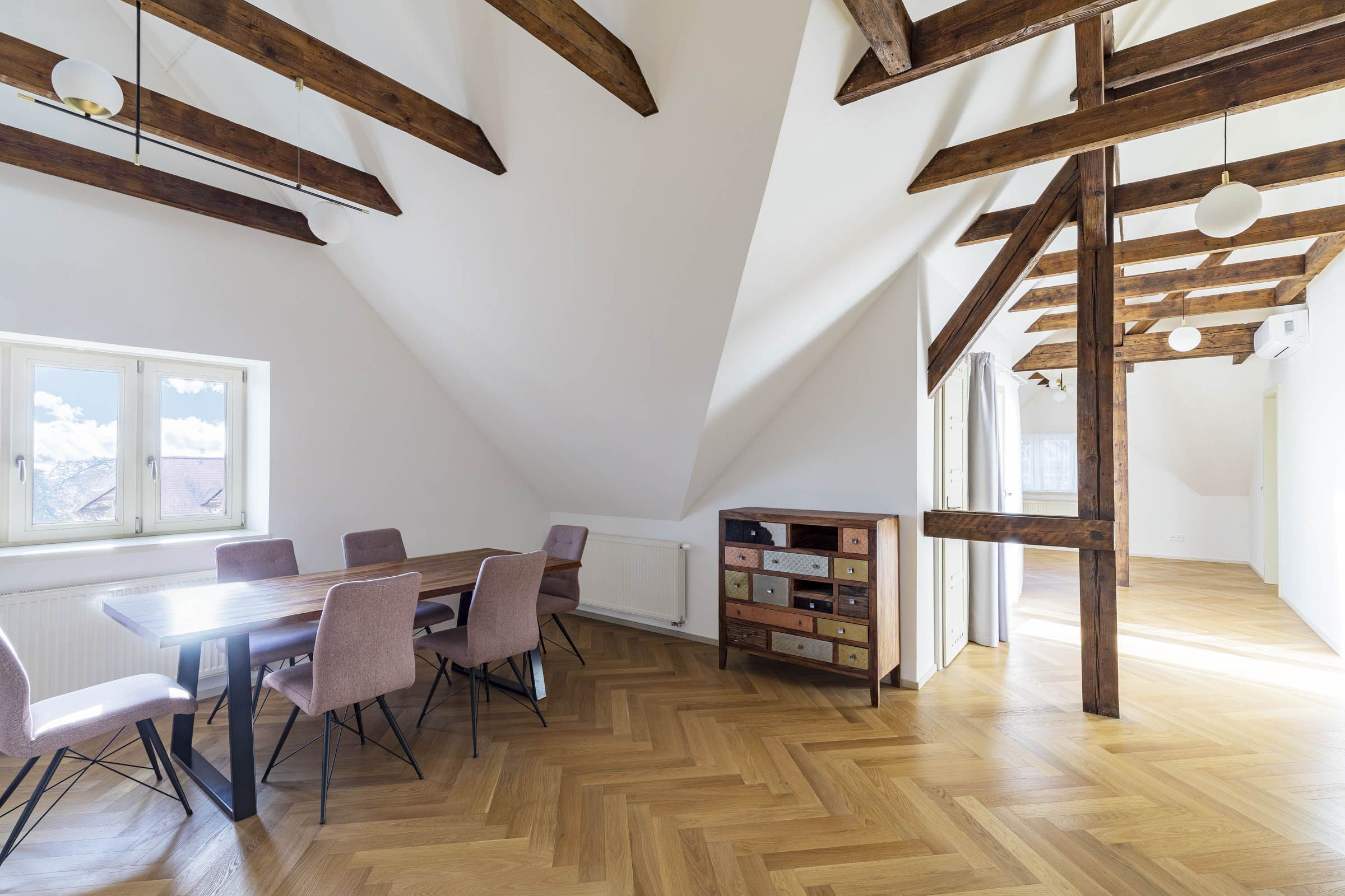 Částečně zařízený byt 3+kk s klimatizací a terasou v žádané části Prahy 10 - na Vinohradech