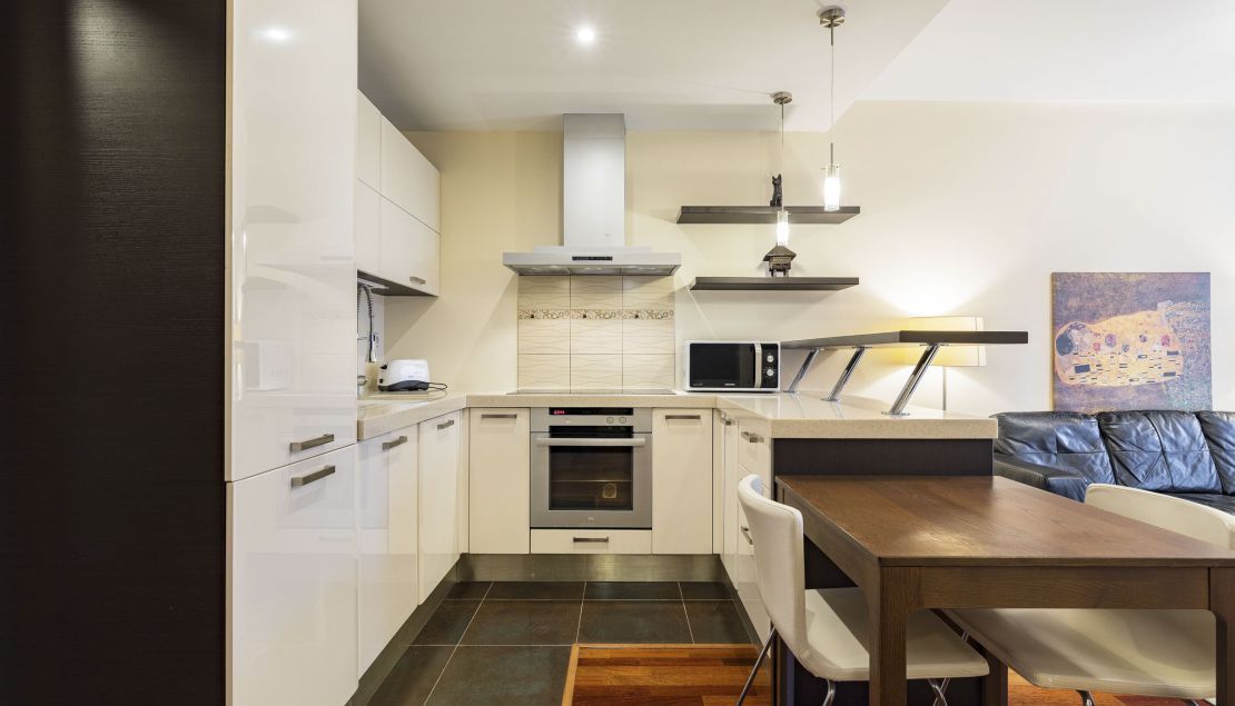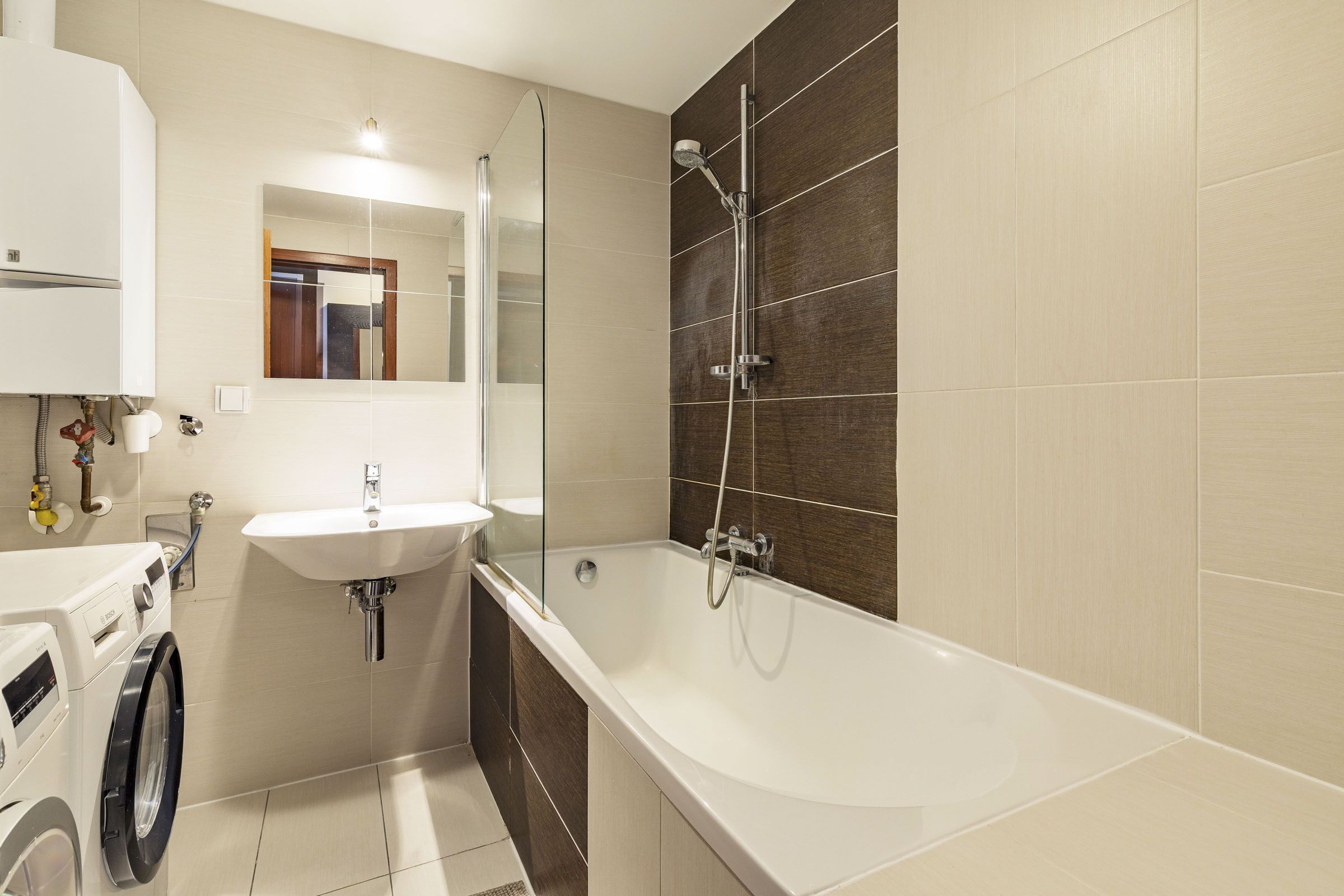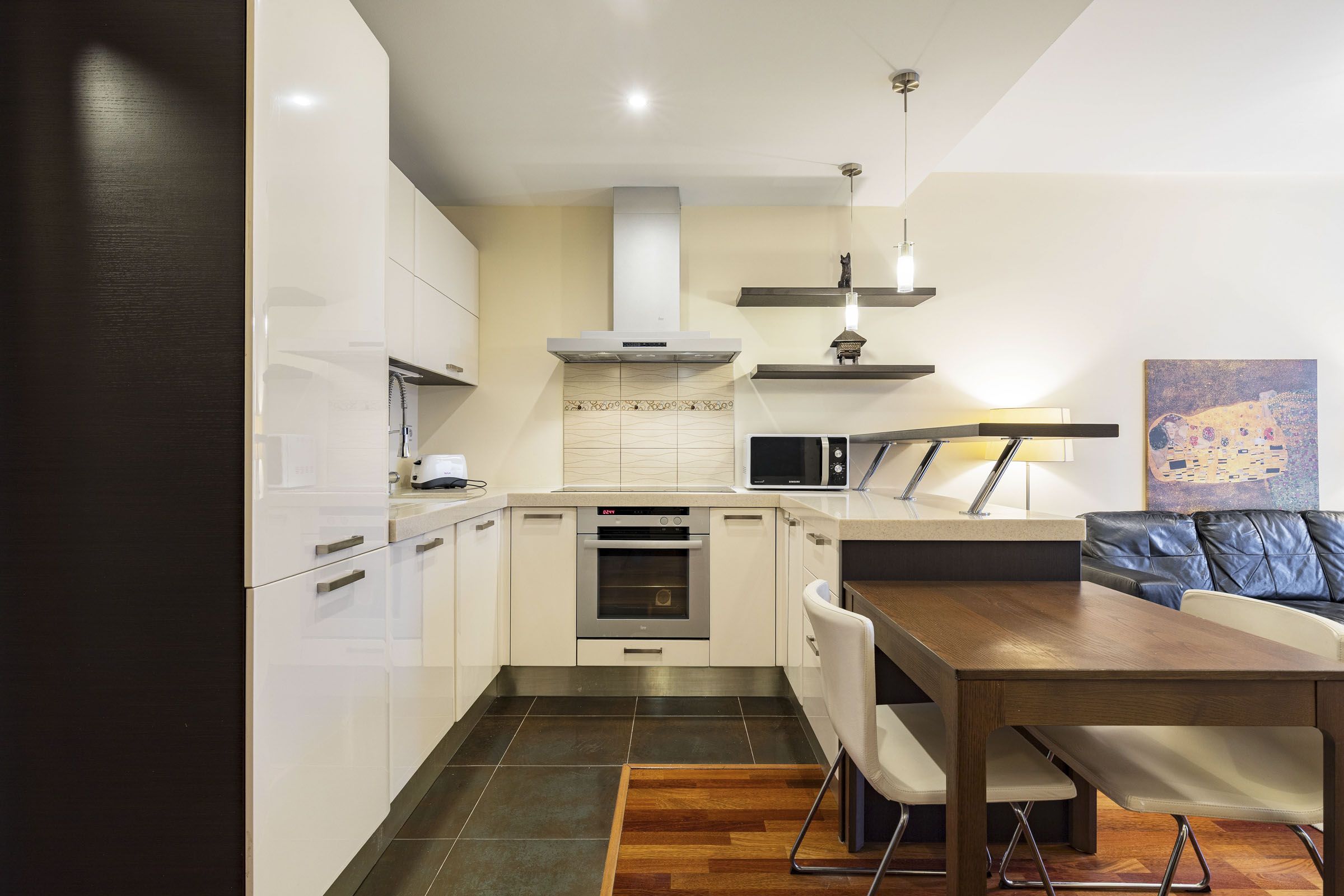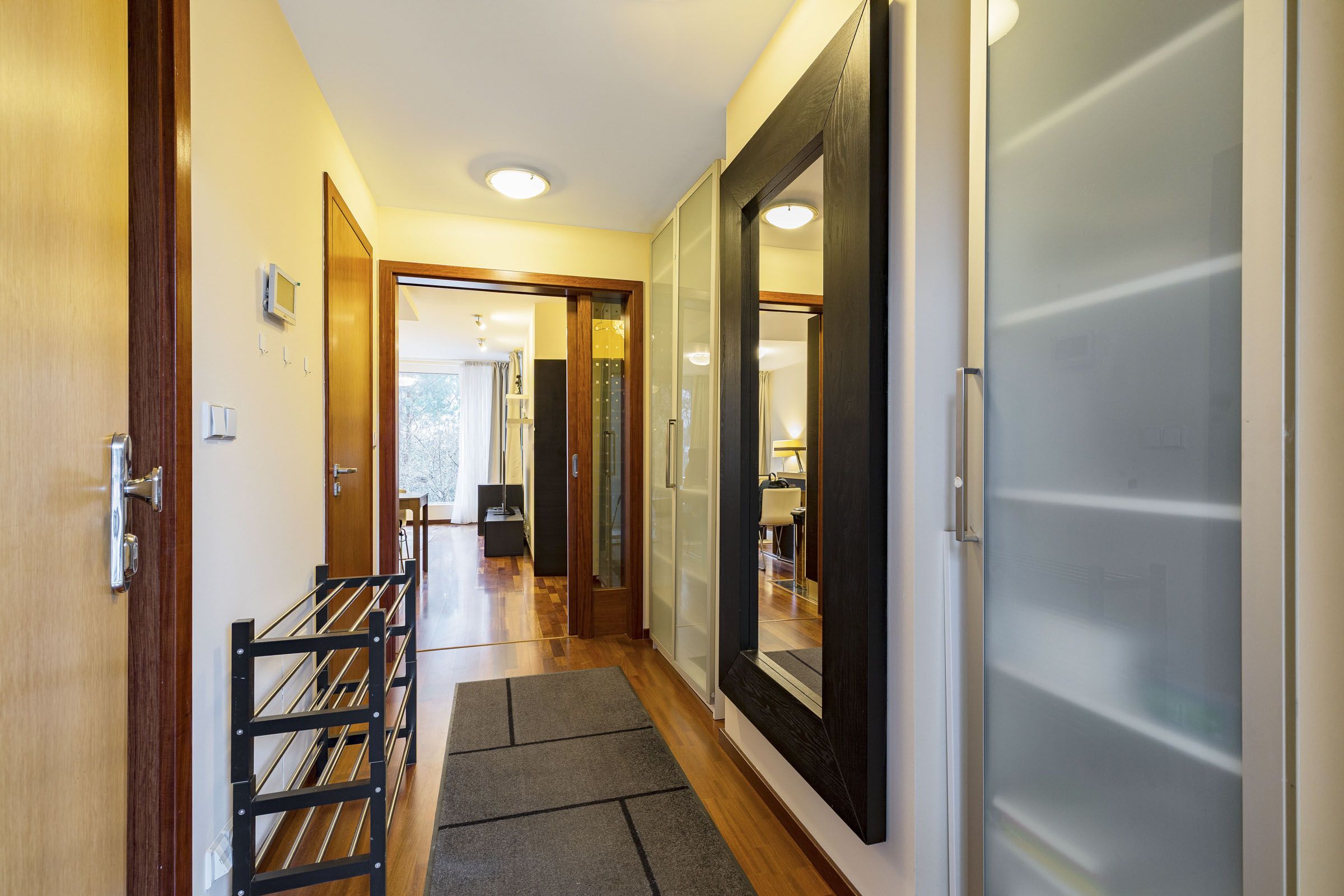Byt se nabízí plně zařízený a součástí vybavení je koupelna s vanou a pračkou. Kuchyňský kout je vybaven sporákem, troubou, lednicí s mrazákem, myčkou a minibarem.