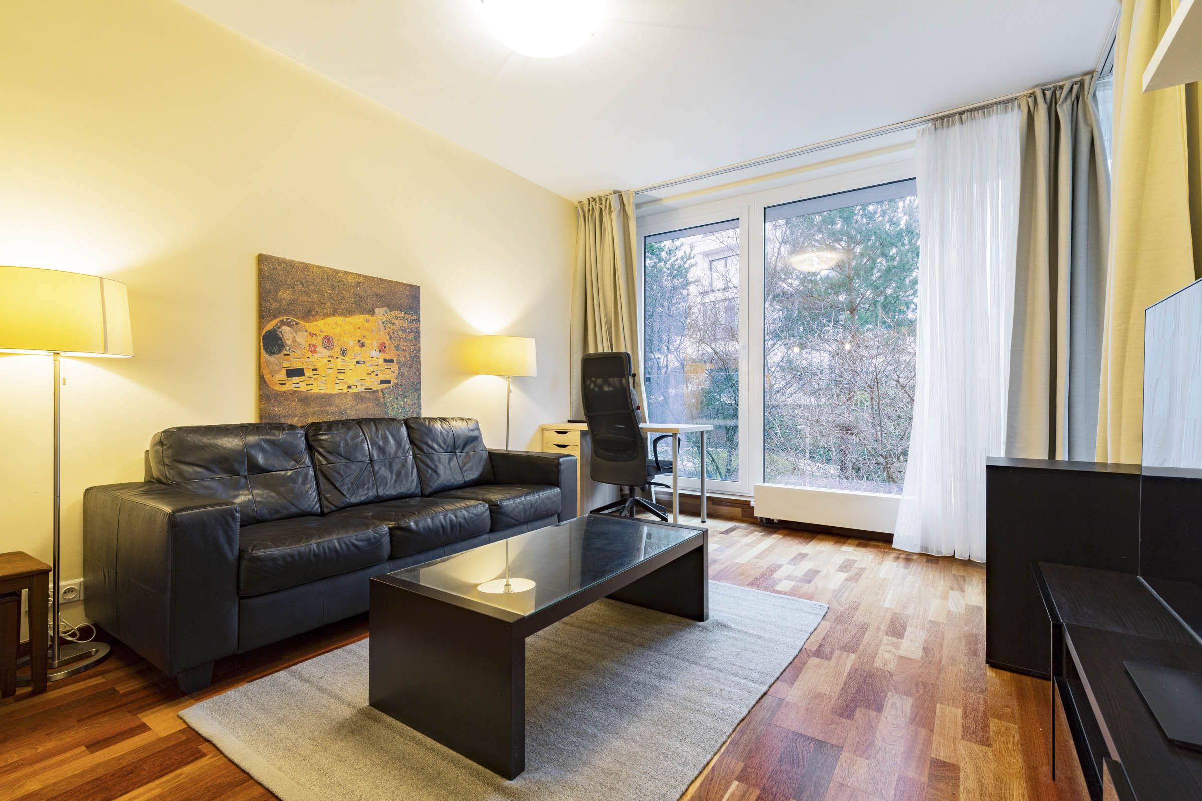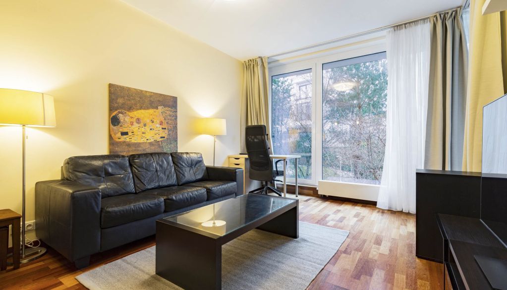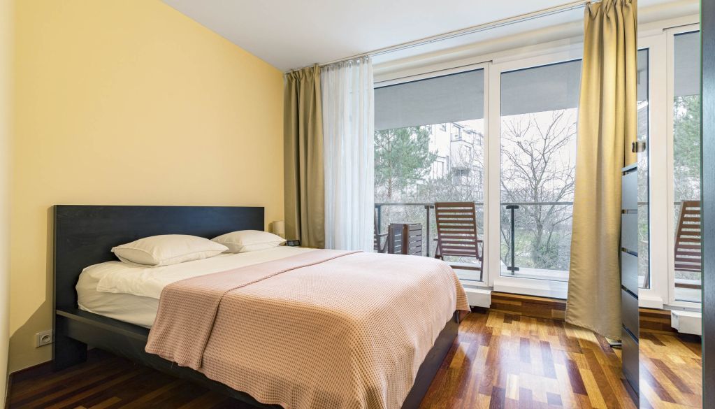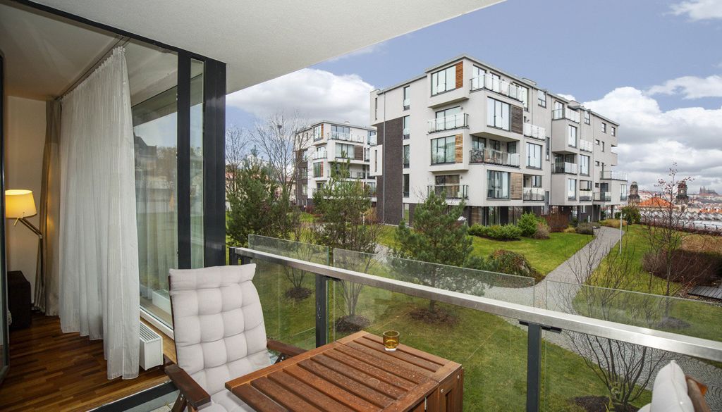 Světlý, zařízený byt s terasou 6 m2, situovaný ve 2. NP moderního projektu Rezidence Riegrovy sady na Praze 2 - Vinohrady.