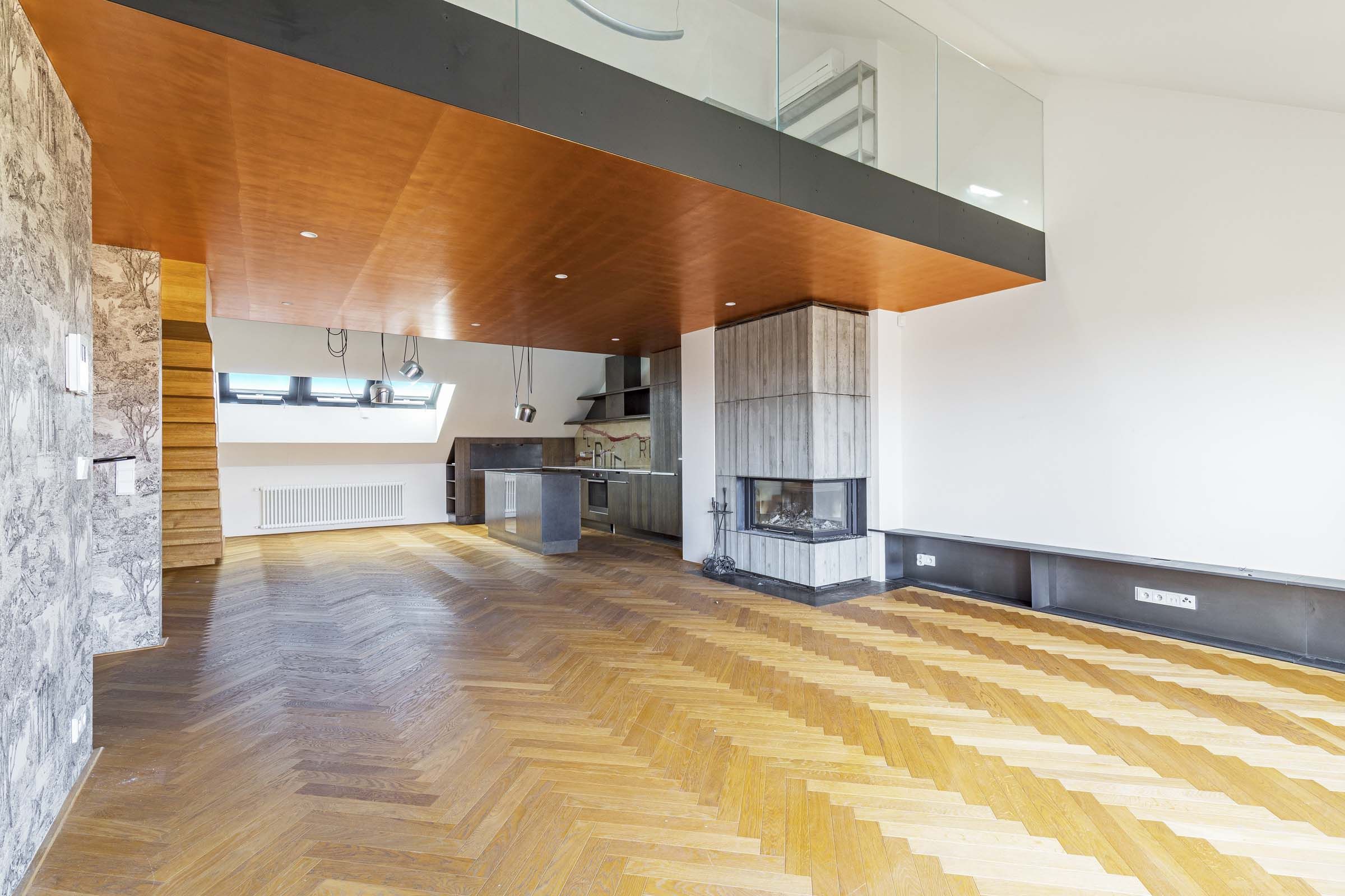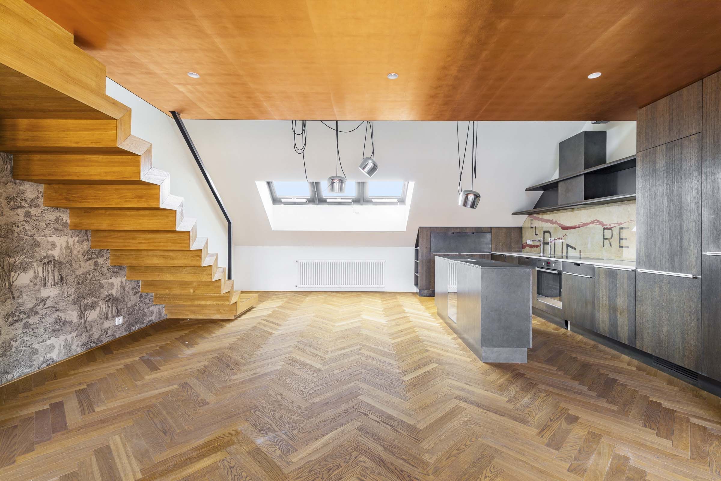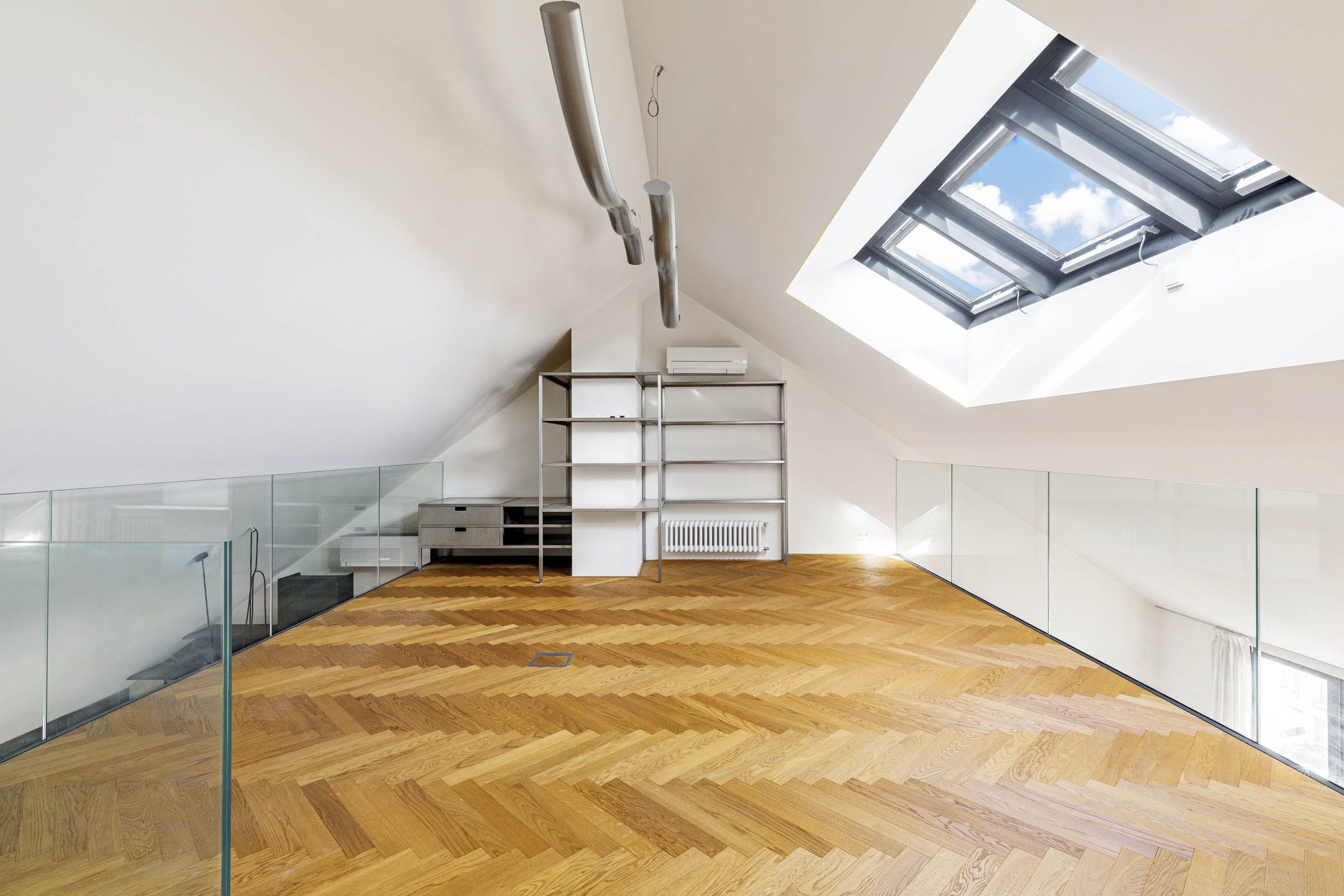 Byt je plně klimatizovaný, střešní okna jsou elektronicky ovládaná a k bytu náleží také terasa (9,5 m2). Interiér bytu dotvářejí kvalitní dřevěné parkety a vkusně zvolené tapety, které celému prostoru dodávají elegantní atmosféru. O bezpečnost se stará alarmový systém.
